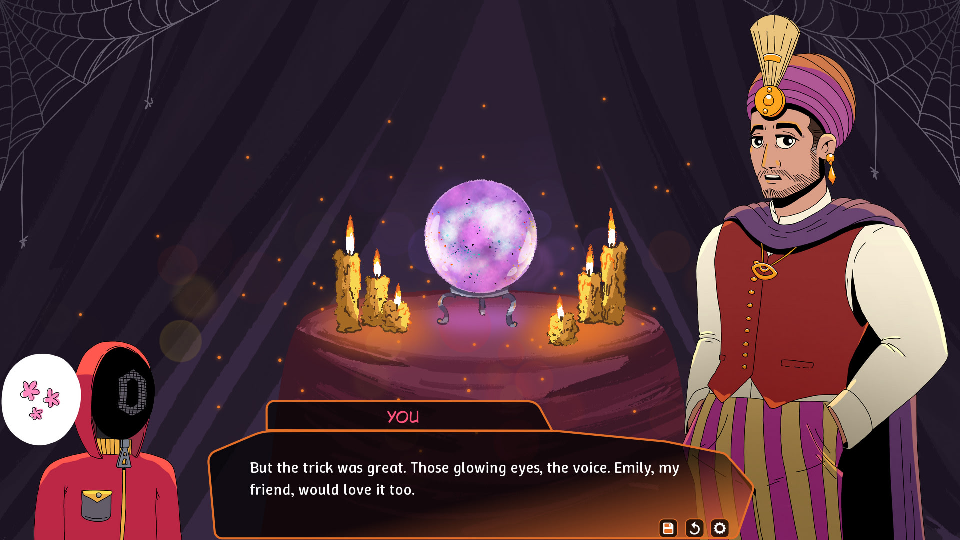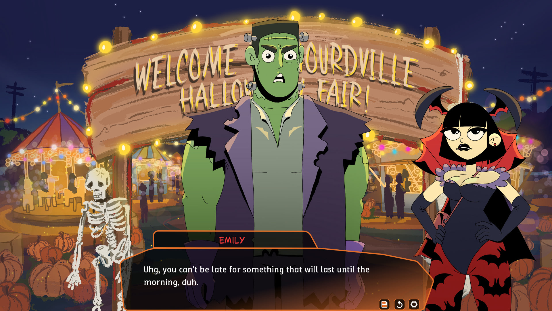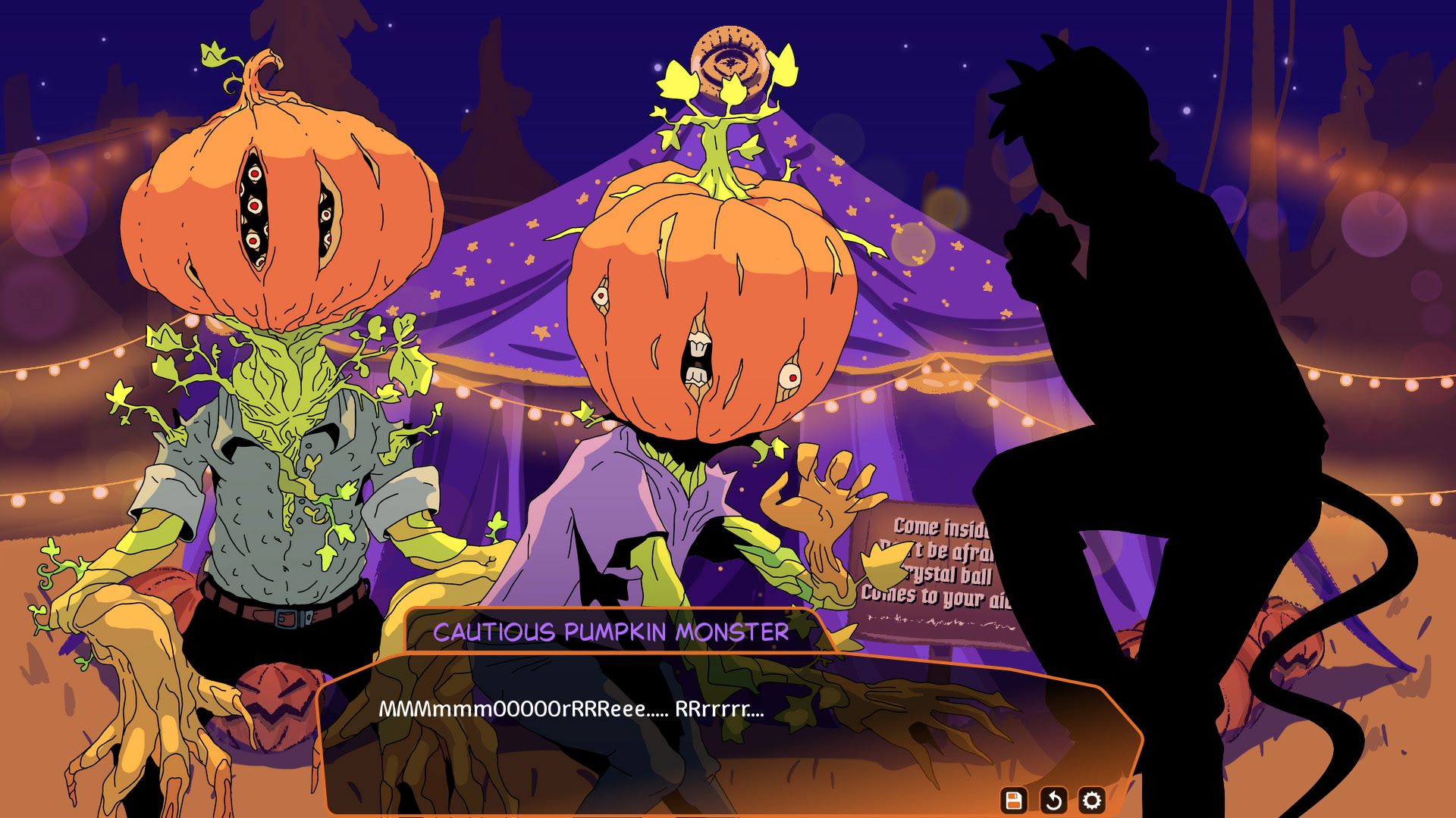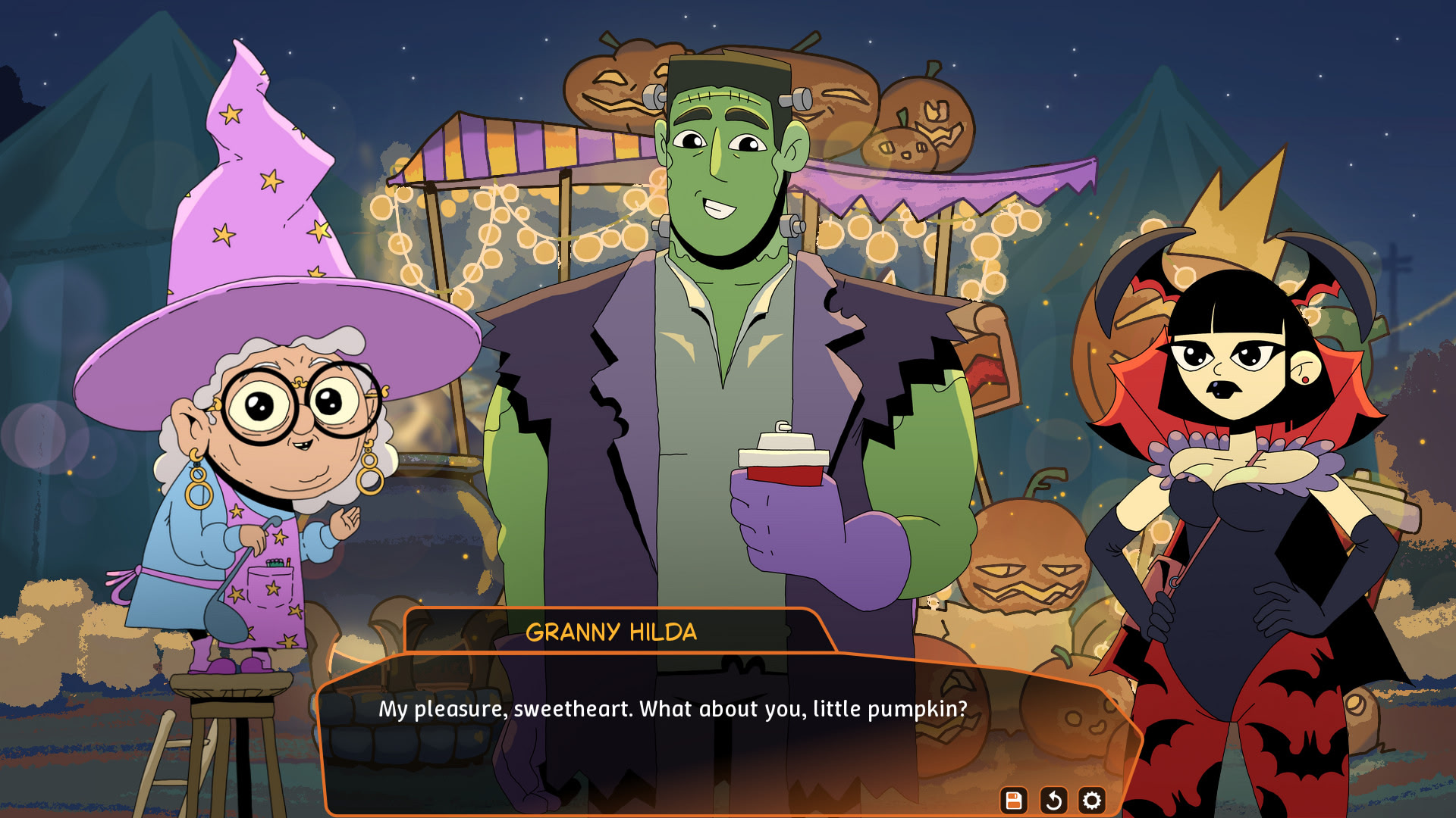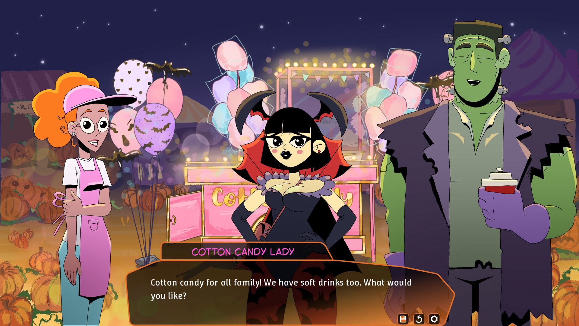 You and your two best friends arrive to Gourdville, a small town hosting a Halloween Fair. Everything's in a full swing, costumes slay, stalls are full of spooky drinks and food, the air is filled with the aroma of pumpkin spice latte.