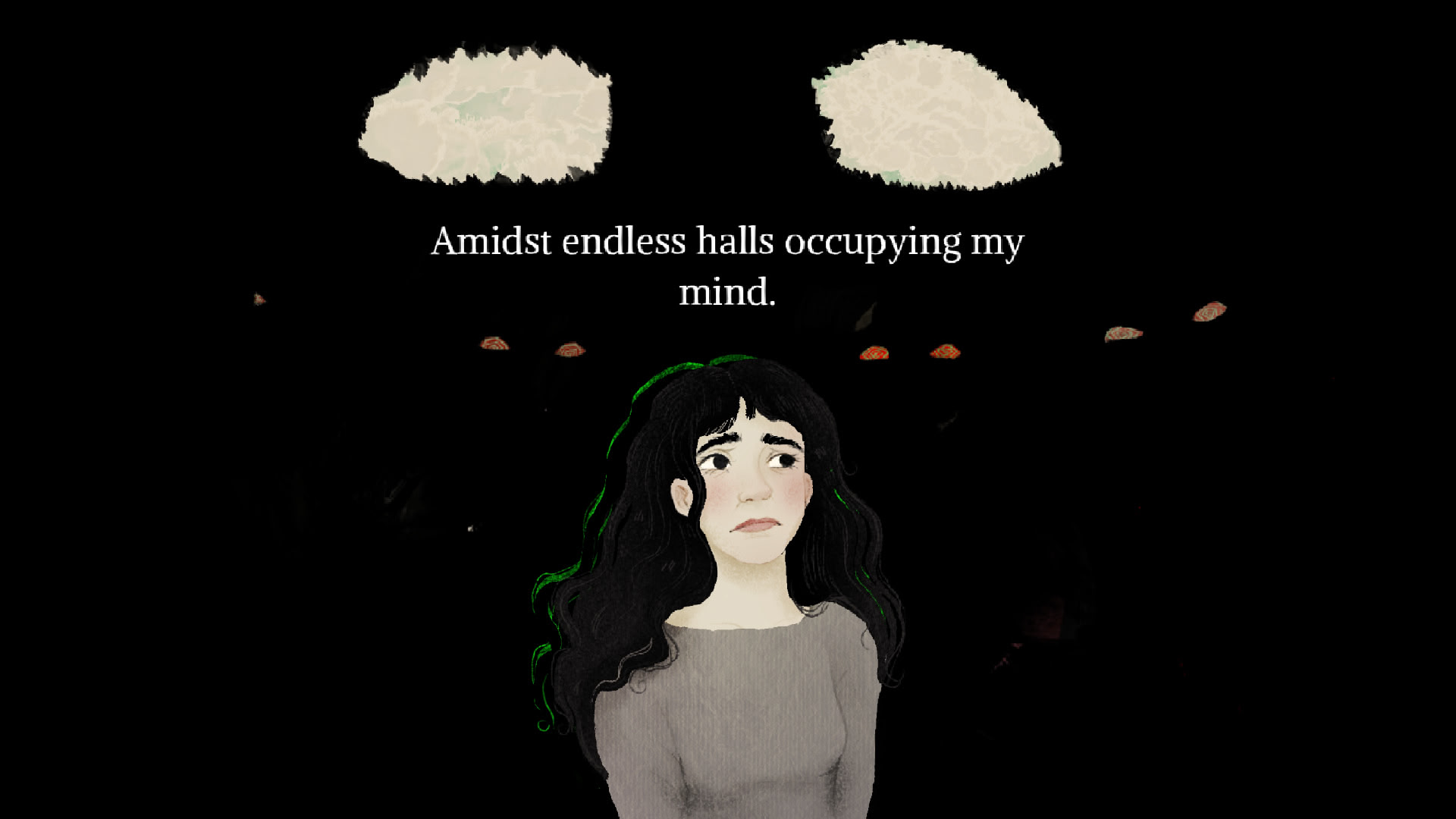 The story depicts the nightly tribulation of Ana as she rushes through an infinite hall of rooms, encountering those she ran away from four years ago. Itch.io]