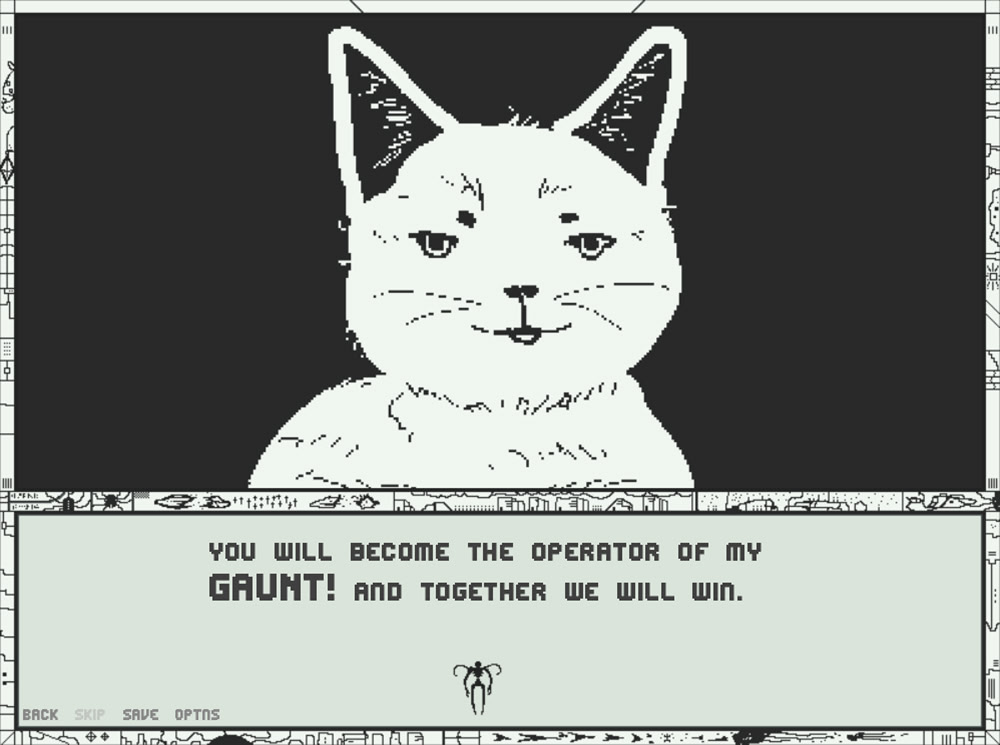 A small space adventure of mystery, horror, mechs, and quirkiness. You are a herald trying to find a candidate to pilot your Gaunt, a vastly advanced organic machine, designed for the sole purpose of bringing the current war to a complete halt! In the process you will get to know your pilot better...