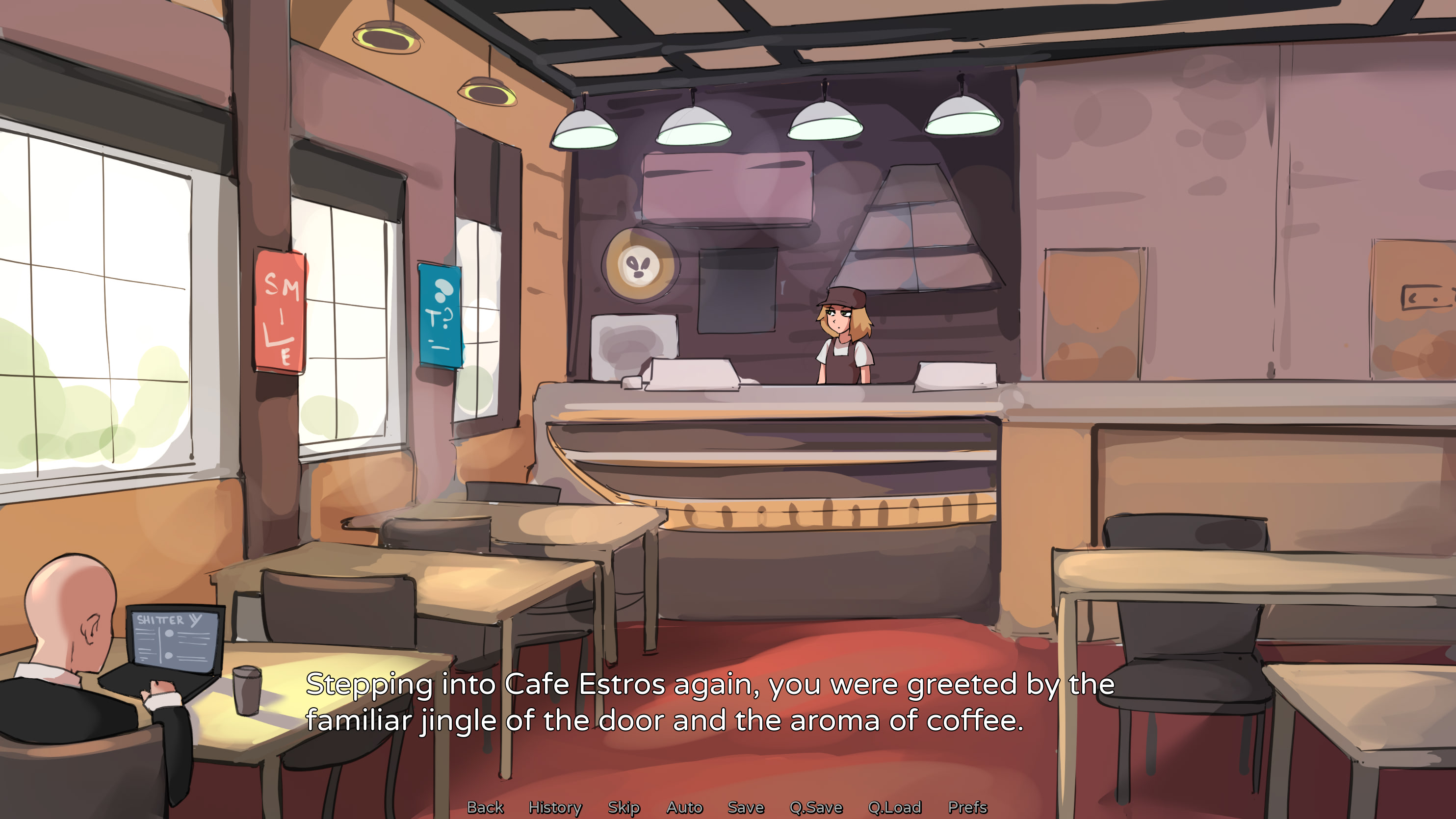 In this visual novel, you visit a café and find a young barista named Hazel. The two of you hit it off and the choice is up to you. What kind of coffee do you like? Do you want an espresso? Something sweet, like a frappe? Or do you want to try the special: A Hazelnut Latte?