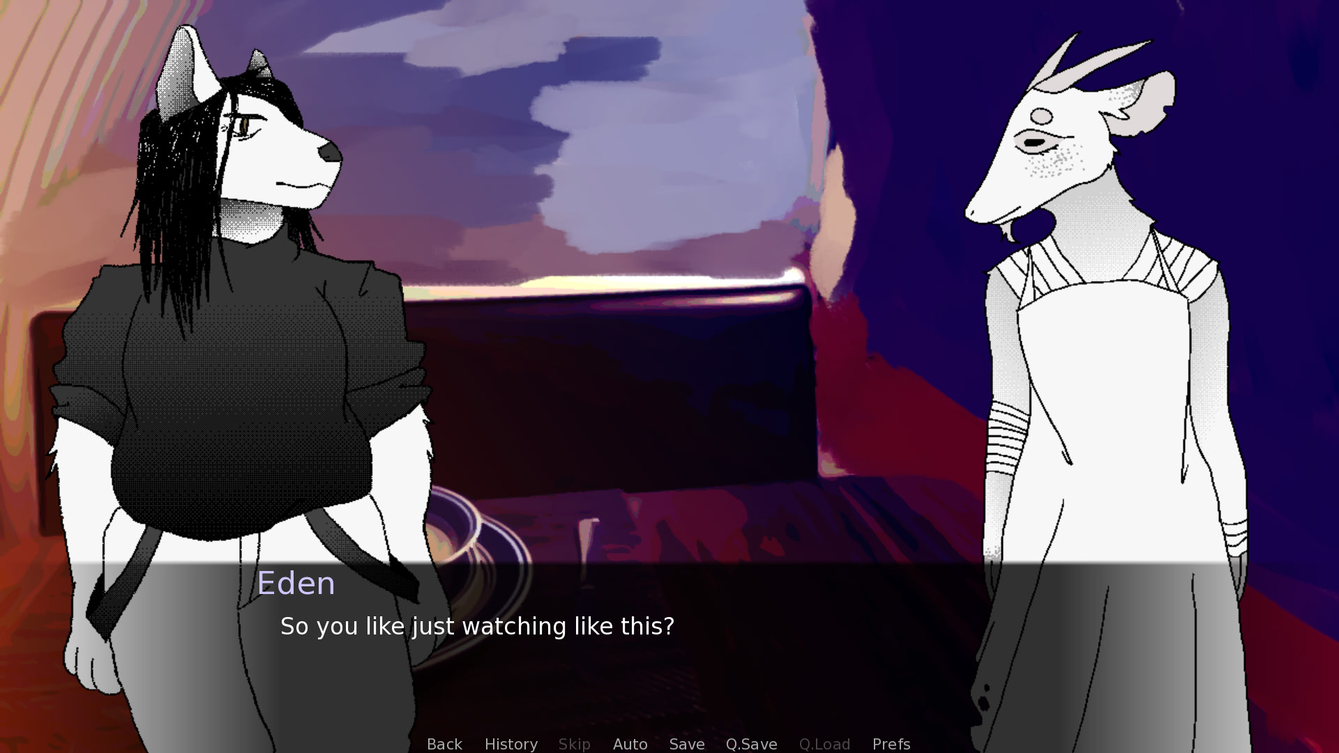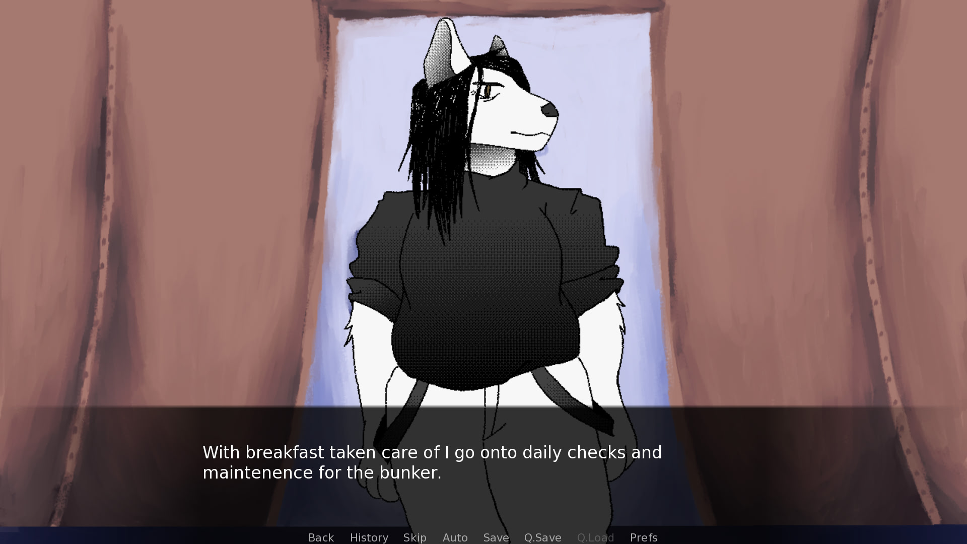 Waking up from stasis alone with no memories years ago Em has made peace with living a calm quiet life in her bunker, until one day while watching the cameras she spots a woman who needs help. Letting her into her life and bunker Em changes both of their lives forever... Itch.io]