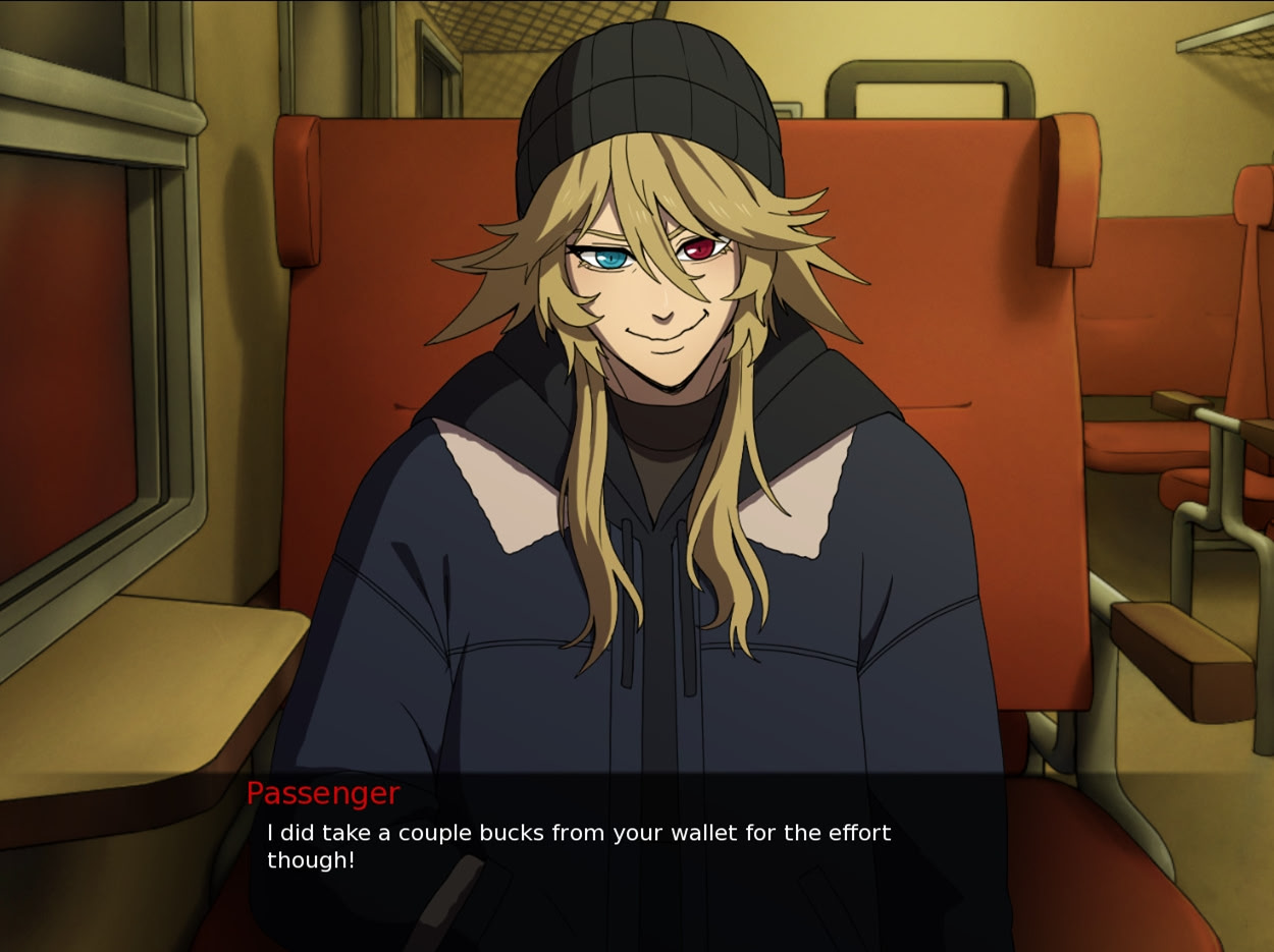 You drift off on the evening train home. When you open your eyes, a stranger occupies the seat opposite… and a night of violence begins. Itch.io]