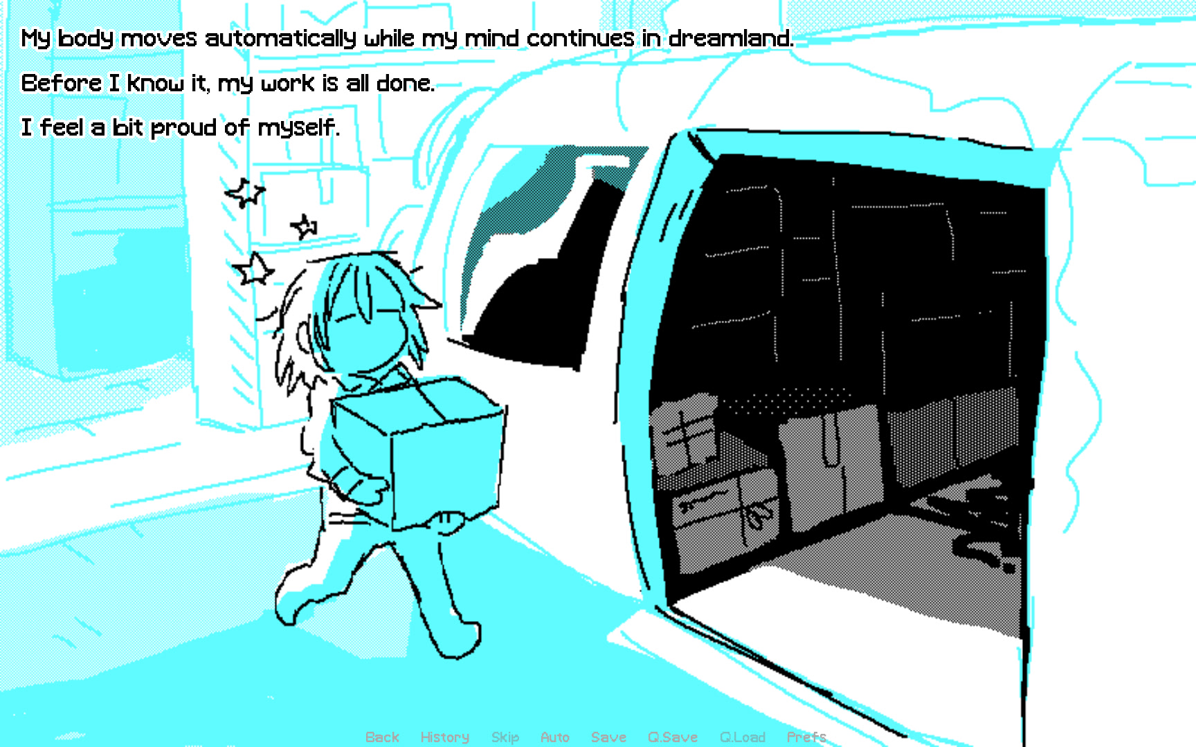 Follow the life of Saturn, a warehouse worker living on the man-made planet of SD-1409-V2, in a universe where space travel is a fad that has long since came and went. Recently, she's been having strange dreams about the moon that orbits this planet... But, it's probably nothing, right? Itch.io]
