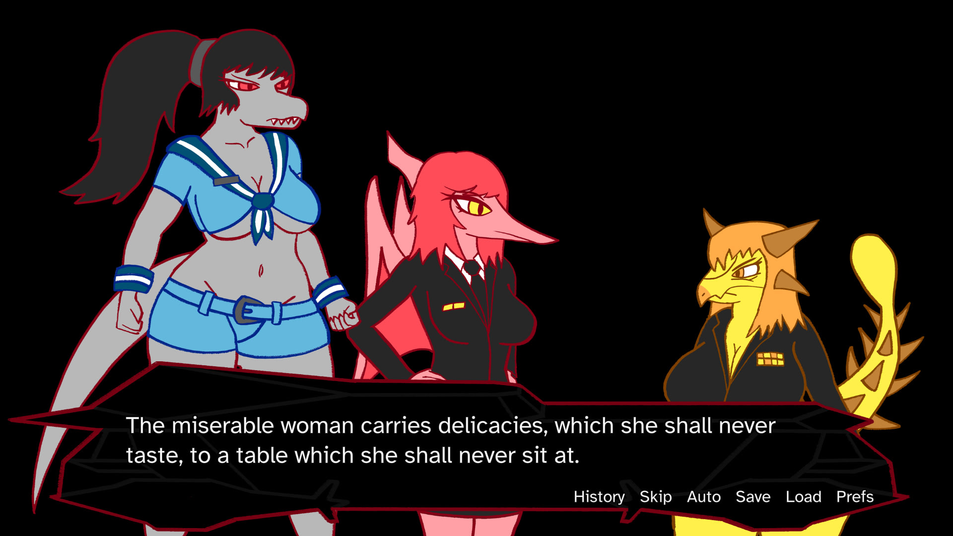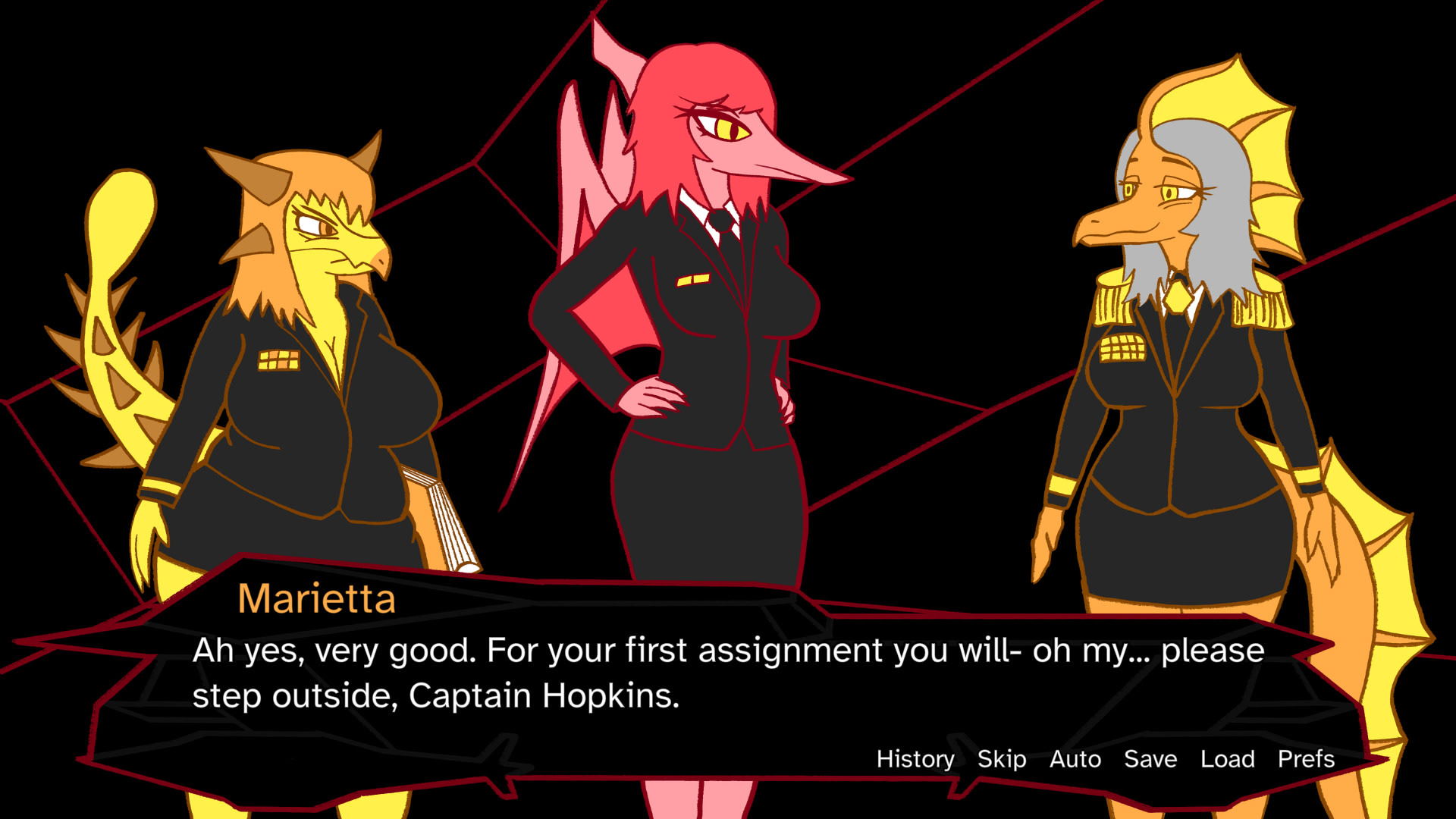 Joan Hudson is the daughter of a billionaire defense contractor. Her dad sends her to a naval warship full of dinosaur women. itch.io]