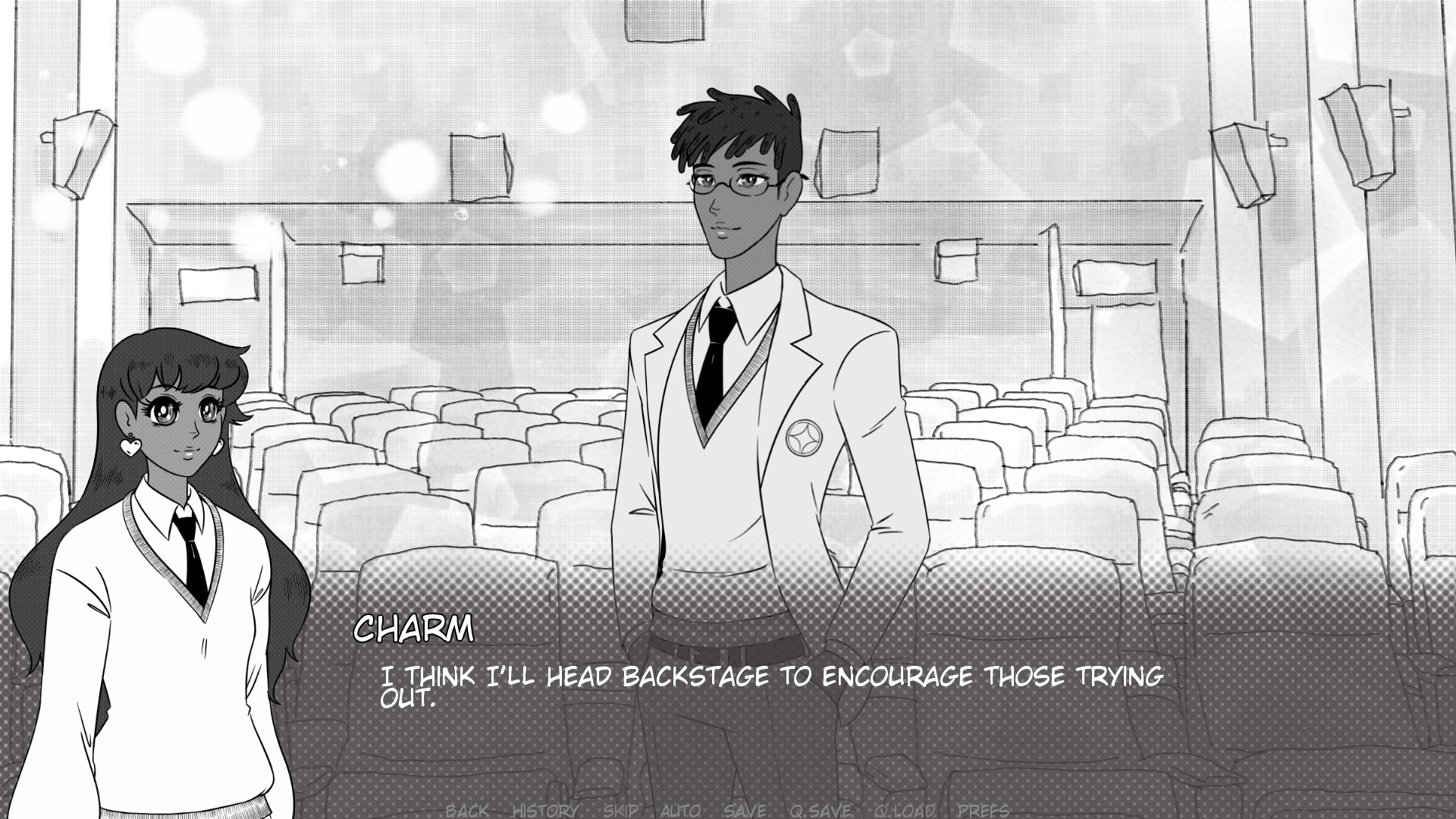 Charm has joined the high school drama club purely to design clothes that actors can flaunt onstage.