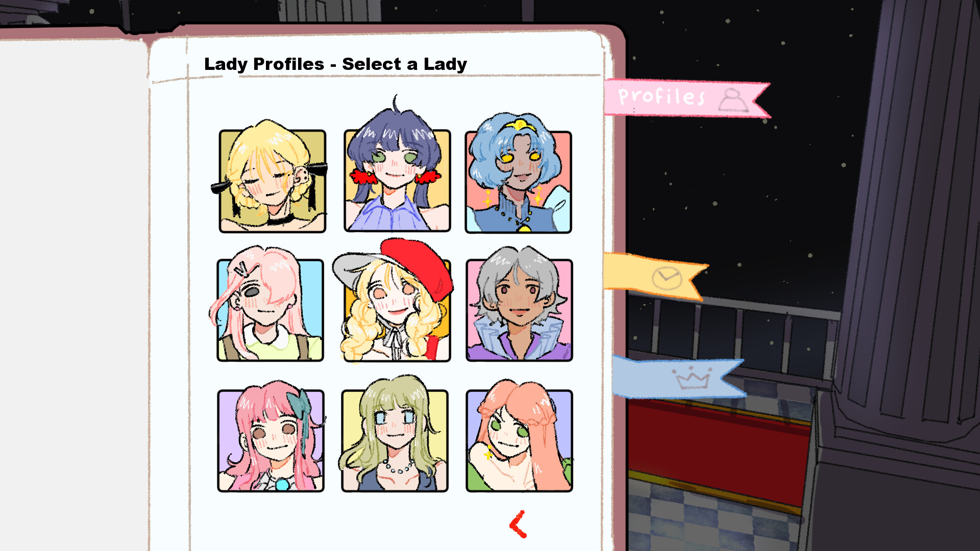 Assume the role of a royal successor to the throne, who is definitely not very good at their job or the brightest bulb there is, in their quest of finding the love of their life in the upcoming royal ball - select one of the 9 ladies to be your Cinderella.