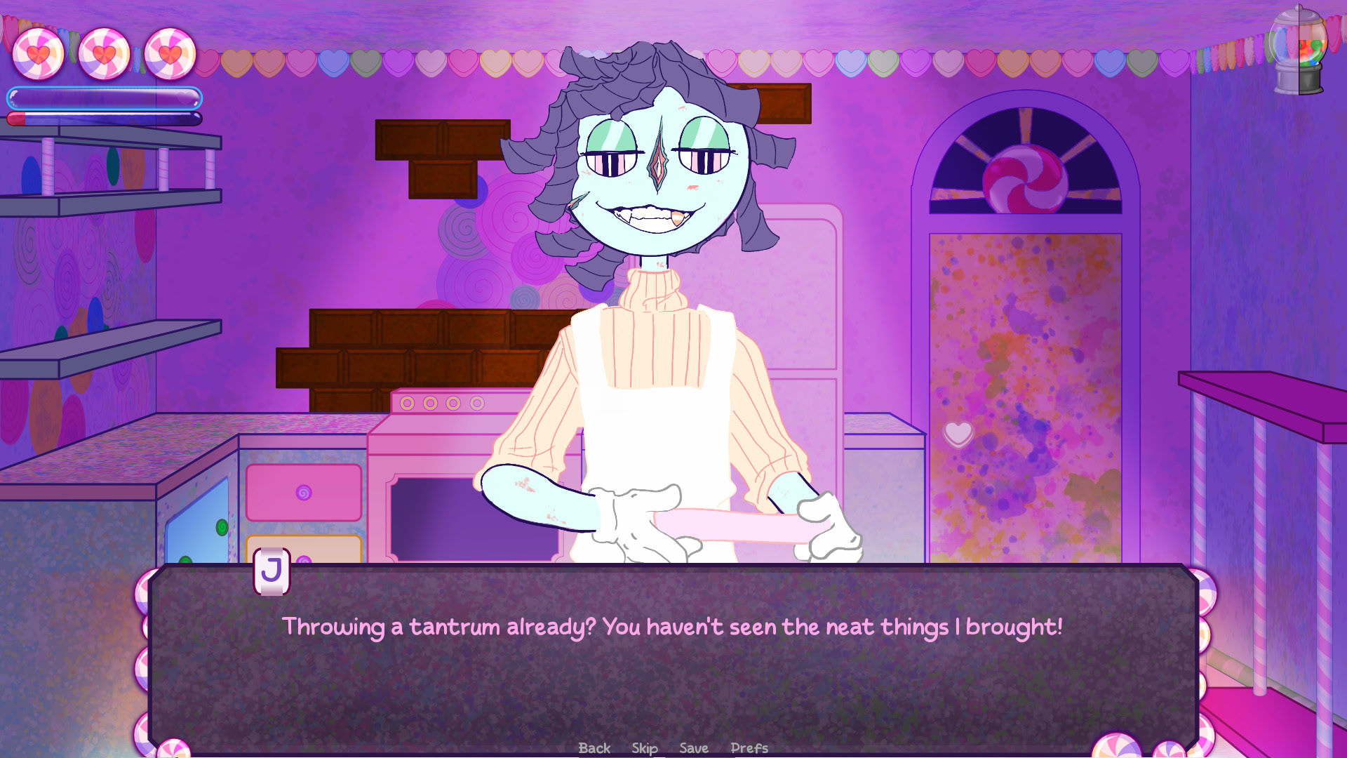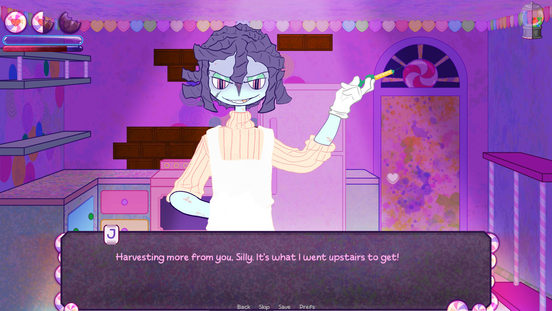 You are knocked out and kidnapped by a fellow candy! Waking up to an unknown location, you must do what it takes to survive before J, the strange candy that abducted you, can harvest you for your sweet parts!