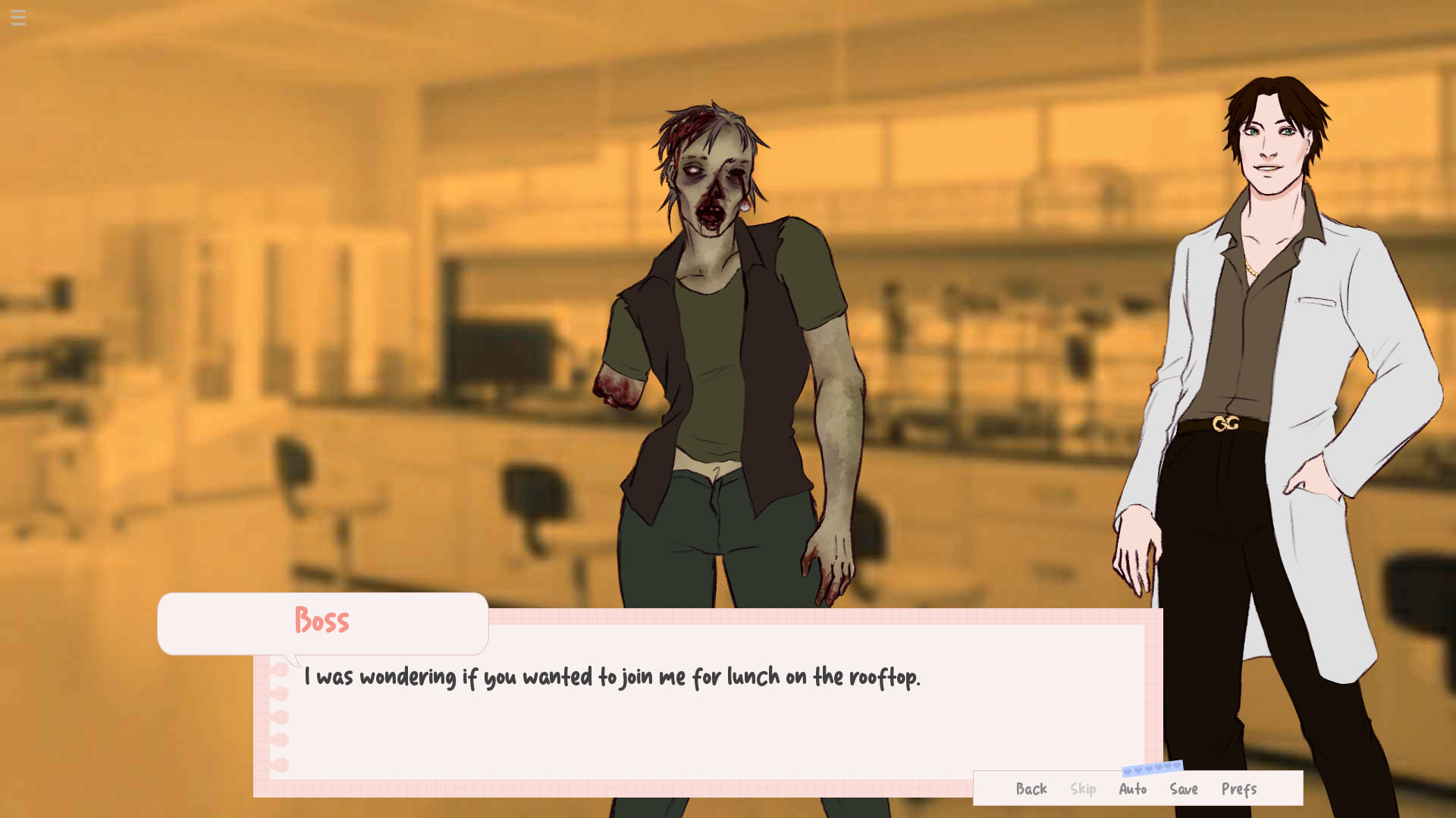 You’ve finally landed a good job working for the government. Your assignment: to monitor Patient Zero of a zombie virus. But everything changes when you instantly fall in love with the zombie. As you try to get to know them, your rich and stylish boss is also attempting to build a relationship with you.
