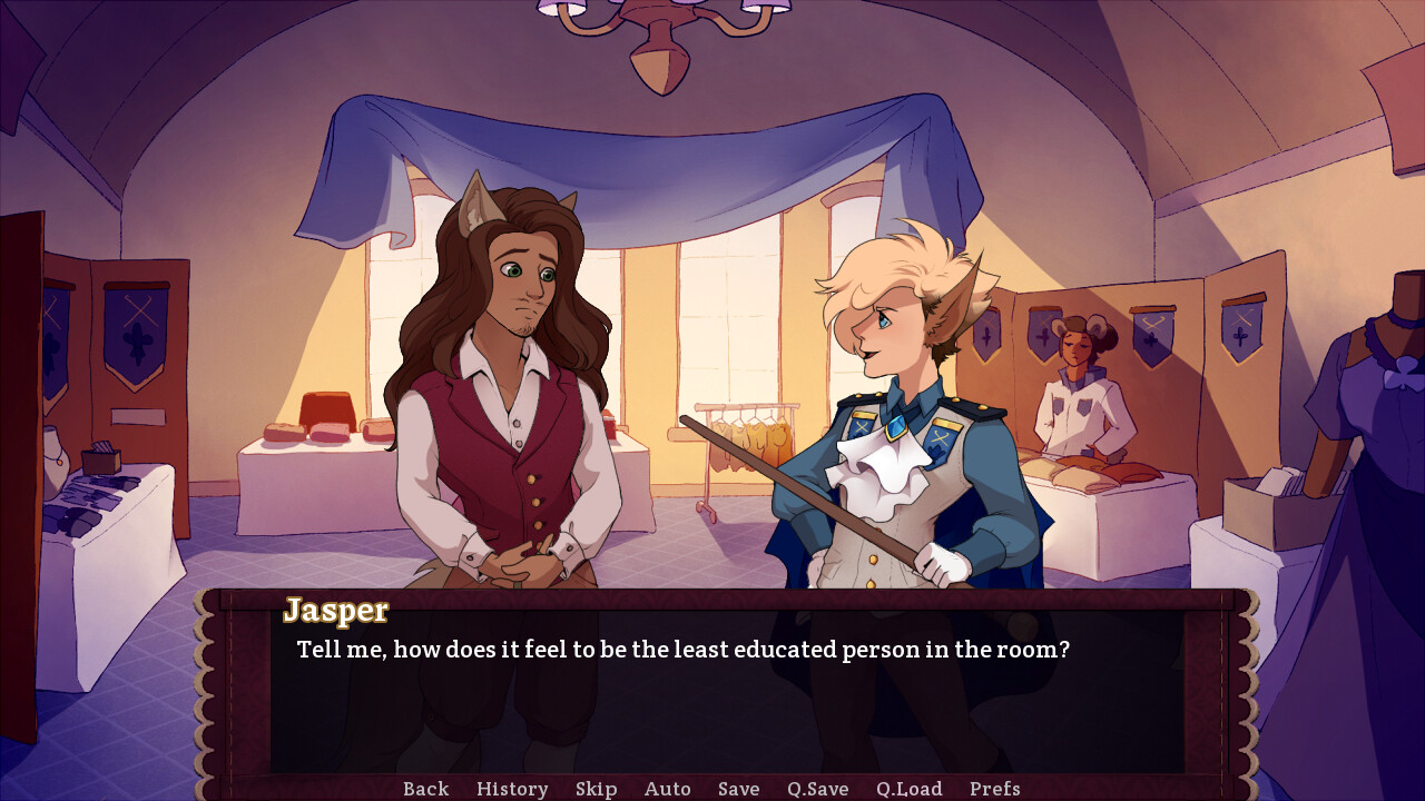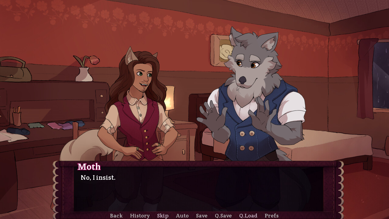 The fairy dressmaker Moth is a charismatic, skillful, nervous ball of perfectionism. Despite his anxieties, he is determined to prove himself in the bustling city of Fitzburg. Not an easy task, since the treasurer of the local Tailors' Guild is dead-set on keeping him off his turf! Right when Moth is feeling the most like a fish out of water, he encounters a timid lycan tailor, Caesar, who is going through the same hardships for different reasons. Realizing that they are stronger together, they team up for a daring collaboration.