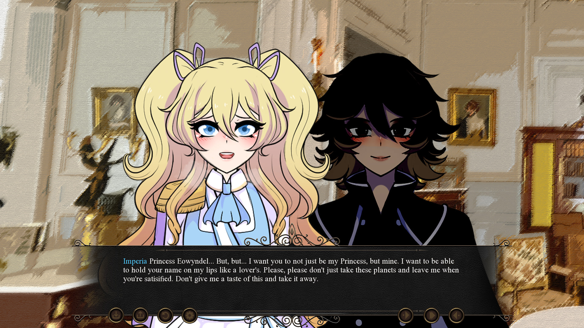 Imperia Hali Fortessence aux Val-Regalia, daughter of Kaska and Hwyngarde, third of her name, and ninth empress of the Regalia Universum, the rightful demesne of humanity that rules from the Nebula Orion to the Cygnus Spur, lives a suffocating life on her ivory tower throne until she finally meets Justicia Eowyndel XI, Crown Princess of Helstorm, and her natural predator, eager to prey on the vulnerabilities of her prudish, sheltered and lonely existence.