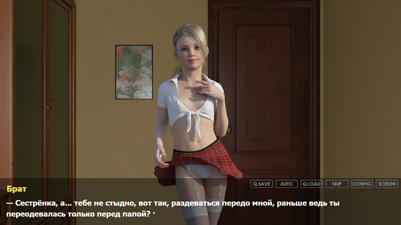 You, the main character, decided to skip school after having adult fun with the girl next door. When you return home, you didn't expect to find your sister at home, and now something incredible awaits you!