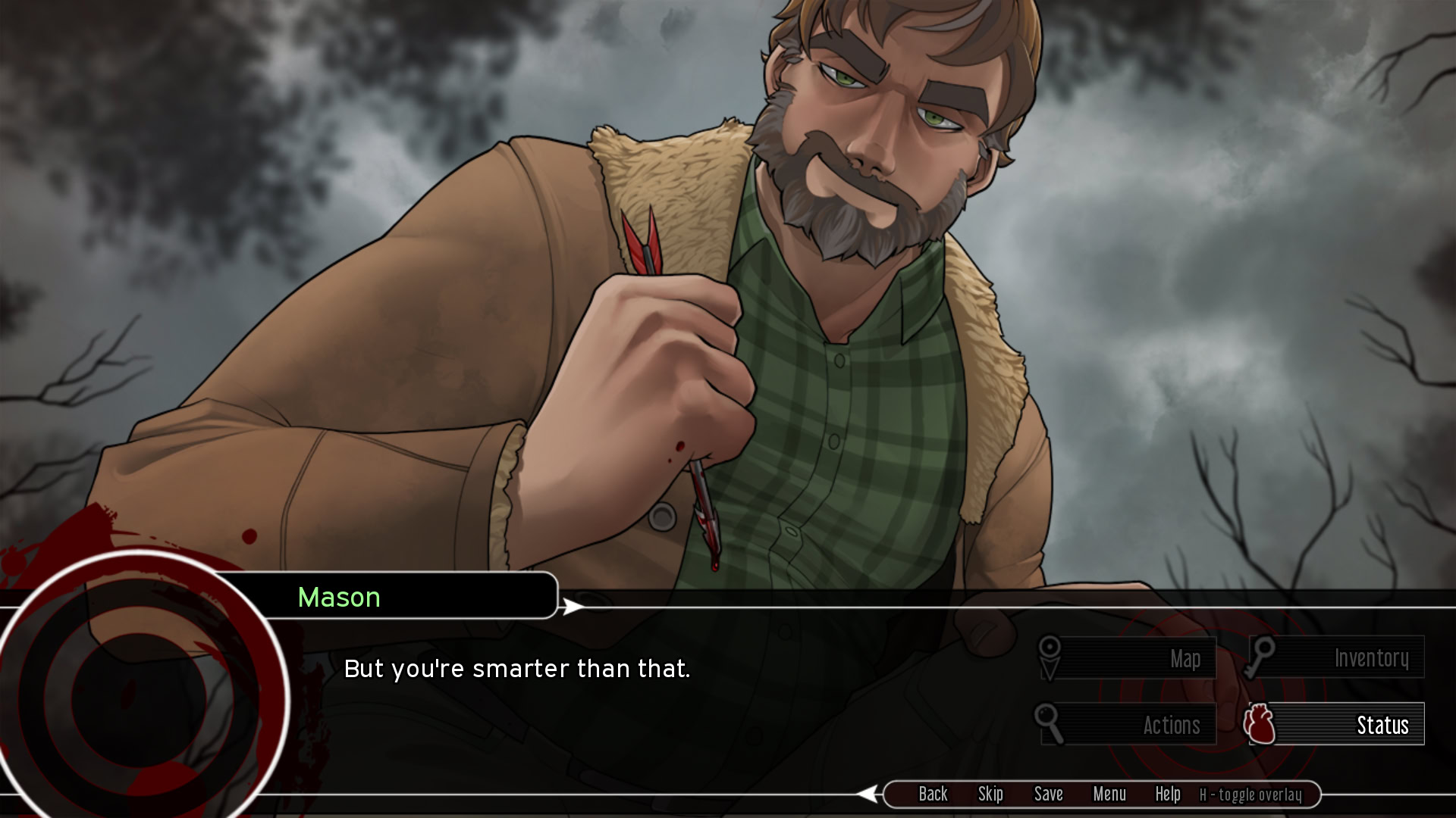 You begin the game in an auction, and you are what's being sold. You can choose one of three paths, being sold to one of three bidders. Mason: If you are bought by Mason, you'll be taken off the grid, deep into the dark Canadian wilderness. Mason's goal is a good hunt and you are his prize. On this...