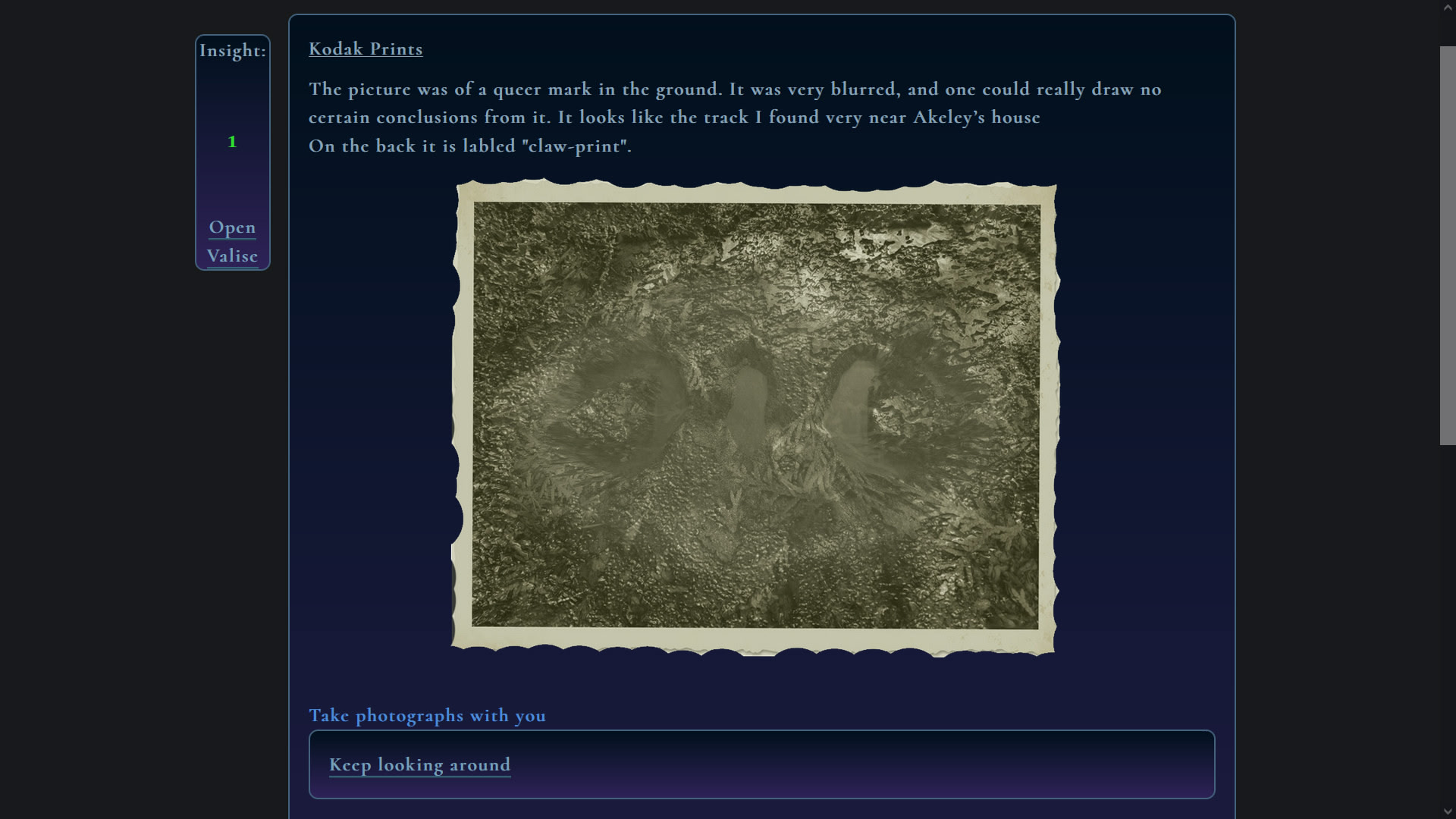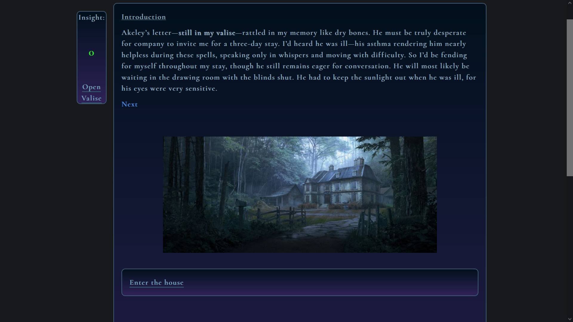 A brief interactive descent into Lovecraft’s The Whisperer in Darkness. Visit Akeley’s home and uncover the truth that drove him to madness.
