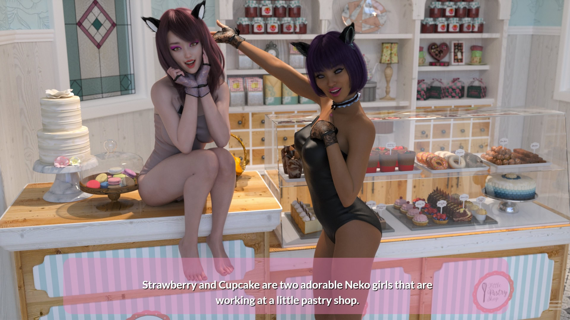 Strawberry and Cupcake are two adorable Neko girls that are working in a little pastry shop.