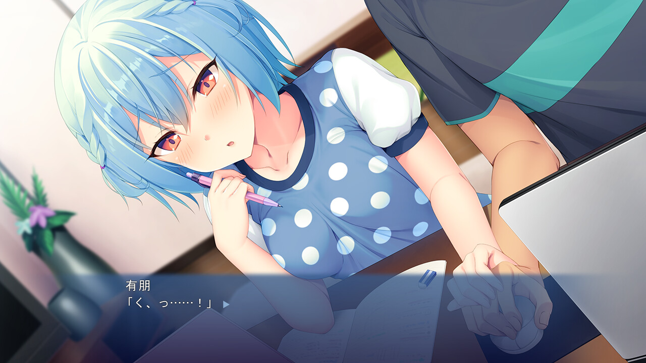 While working side by side with Emiru, Emiru pretended to accidentally cling to Aritomo and then entwined her legs around him.