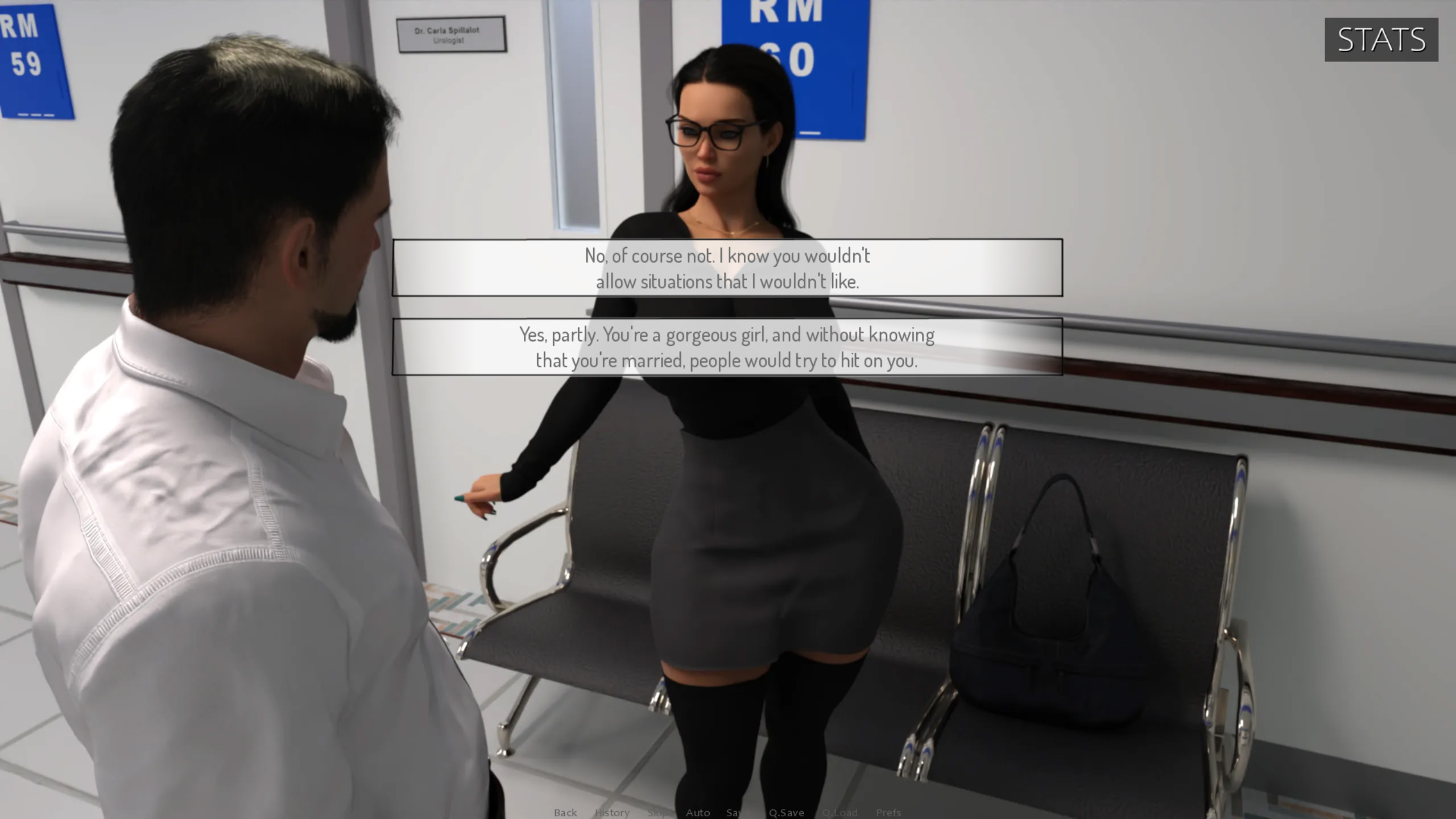 The plot revolves around the interaction of the main characters with the personalities in the new hospital where they have recently started working. It also includes their interactions among themselves. You will be able to control the decisions of all three main characters (the husband, Eva, and Karin). From the very first day, the atmosphere of the hospital will affect them, and you will be able to choose how strongly.