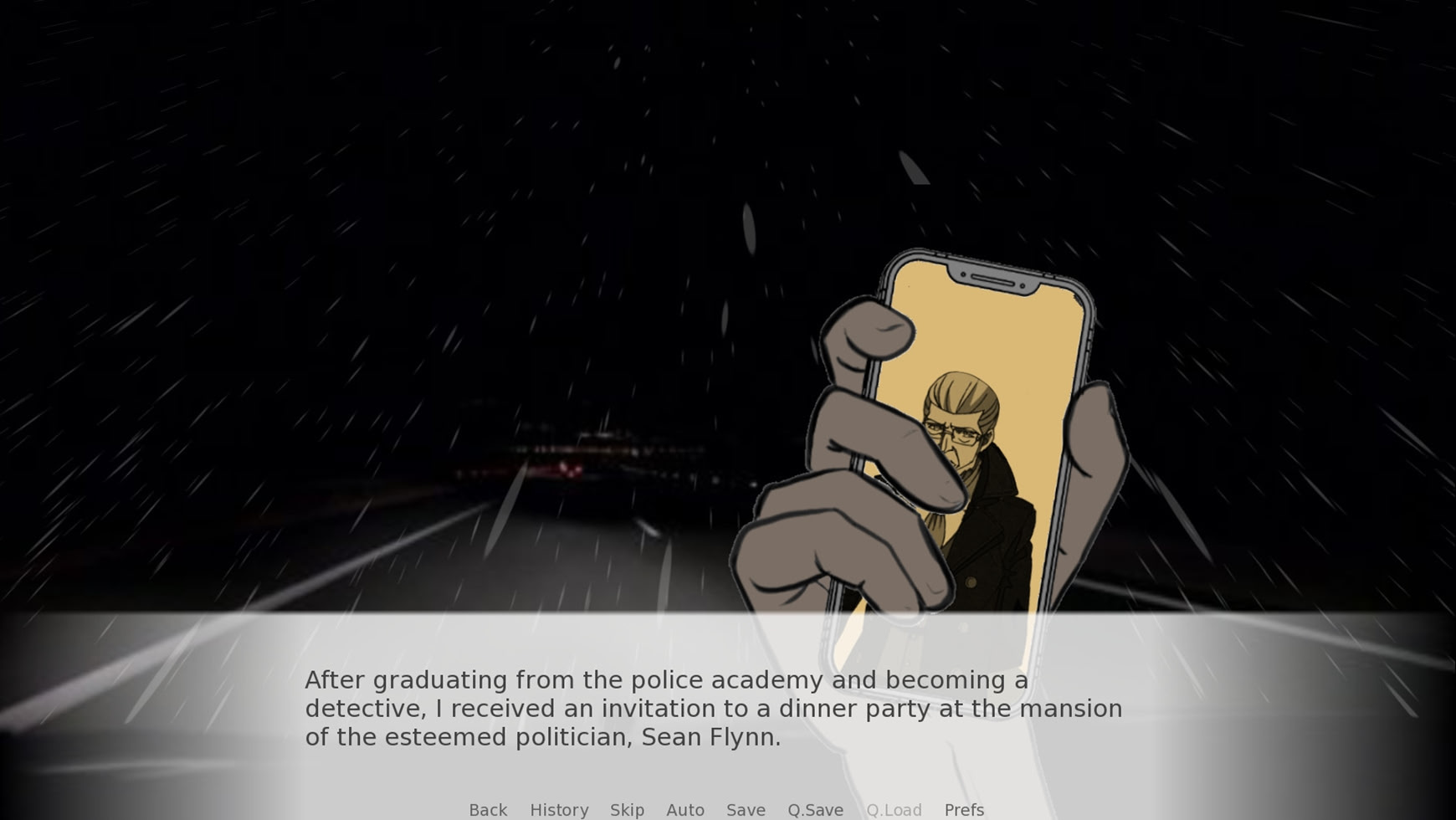 Our protagonist, James, is driving to a charming little dinner party hosted by the esteemed politician Sean Flynn. He will be joined by five others for a night they won’t soon forget.