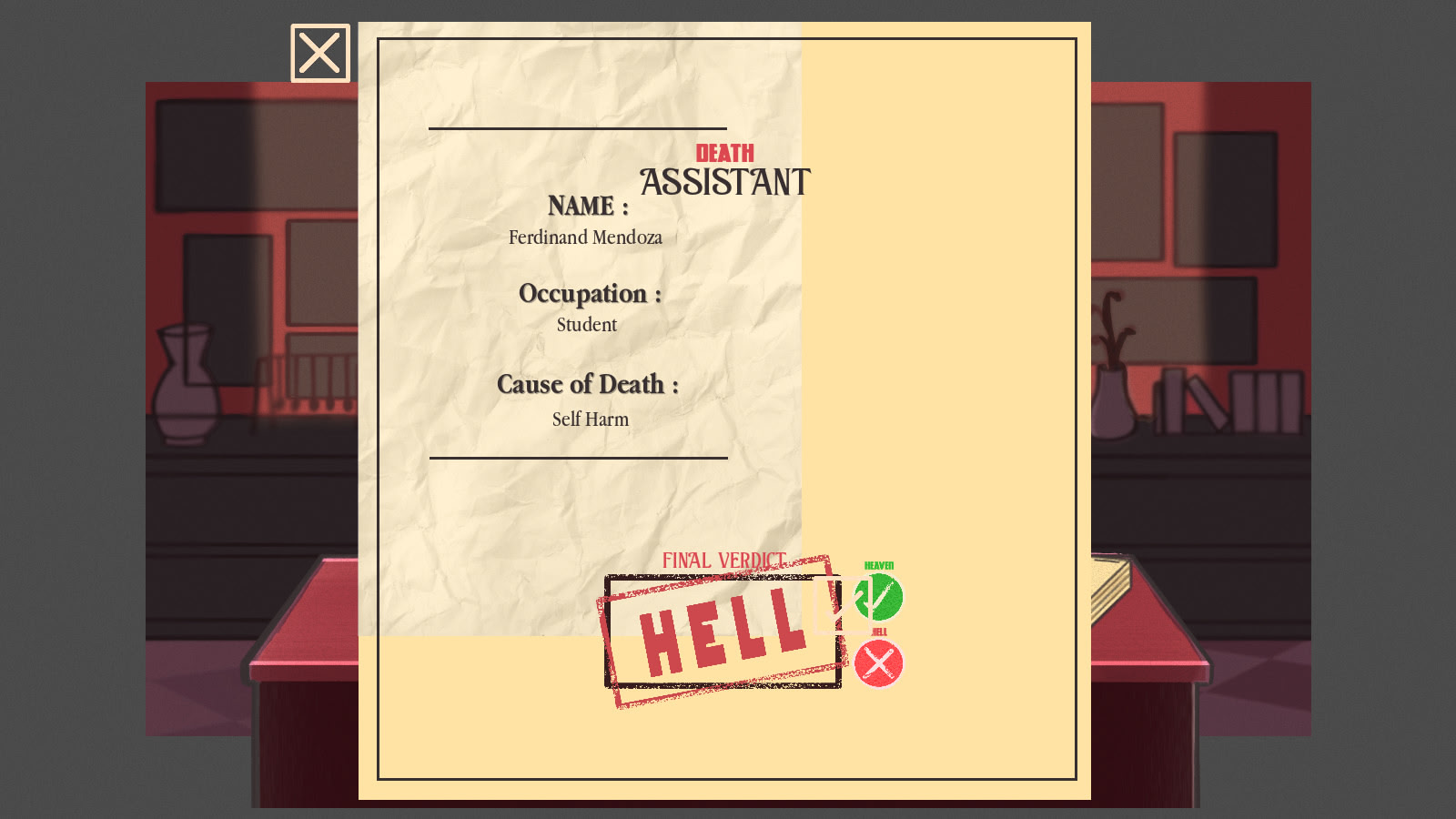 A college girl named Charlie is a struggling student who dies of a heart attack. However, Death is on vacation, so it hires Charlie to take over its work. If Charlie messes up, she will be trapped in purgatory forever; if she succeeds, she will get her life back – and a little extra cash. Itch.io]