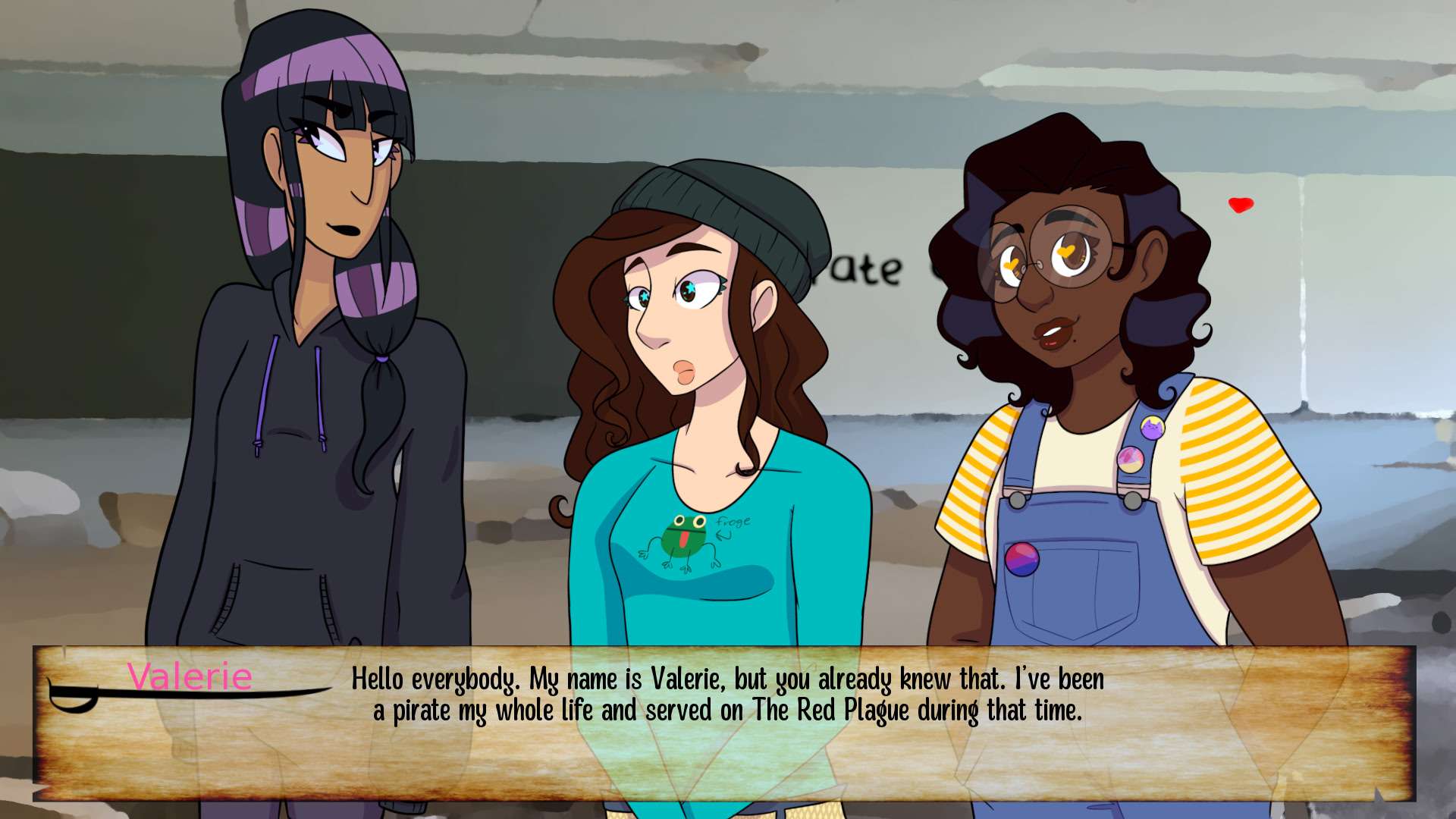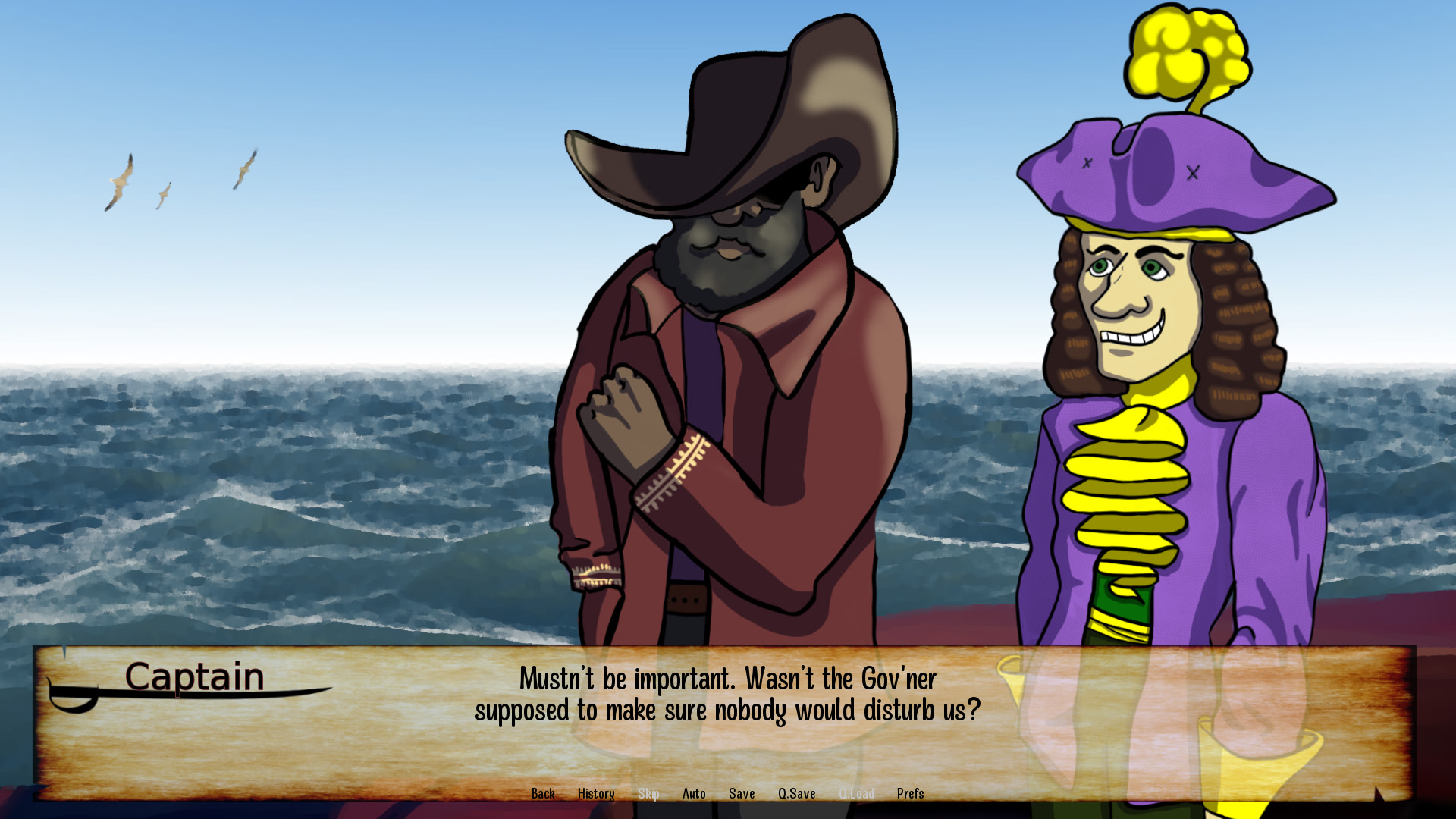 Set Sail is a western visual novel set in the modern day where the Golden Age of Pirating never properly ended. The player takes the role of a young pirate who has lived their entire life sheltered on a famous pirate ship known as The Red Plague, captained by The Demonic Pirate Ricardo.