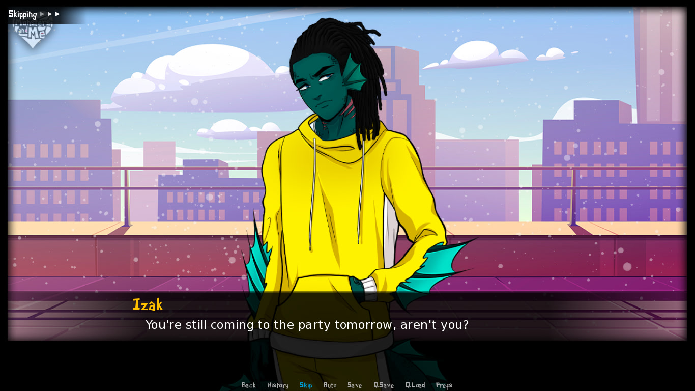 In Monsters and Me, you play as Arthur, a teenager close to graduating high school with his friends. Everything was going well until suddenly Arthur gains the ability to see creatures, monsters, and other beings too outlandish to believe. It's up to you to decide how you go about your relationships ...