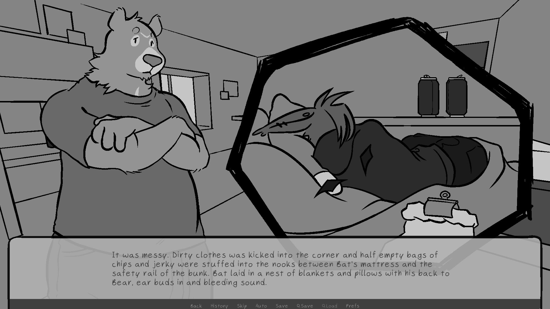 With two perspectives on the same story; you'll follow either Bat or Bear as they learn how to navigate the difficulties that come with col, and watch the two form a connection with each other over the course of a year. Itch.io]
