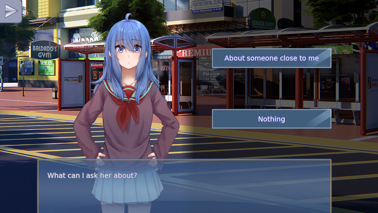 Luckily for you, someone comes to you as soon as you leave the alley... and it's your girlfriend?