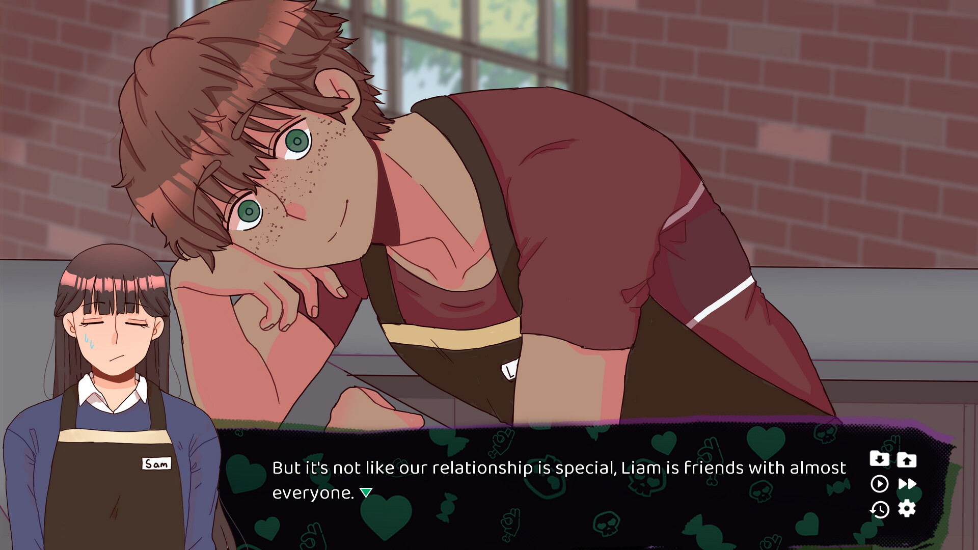 My Sweet Zombie! is about Sam Chen, a recent college graduate who loves to bake. However, she can’t remember the last time she touched an oven, unless you can count the conventional one they use at the cafe she works at. Sam’s job usually involves putting out fires at her store, so whether it's dealing with a annoying customer or fixing the leaky espresso machine, it’s Sam’s job to take care of it. Thus it's no surprise she finds herself exhausted from her job.