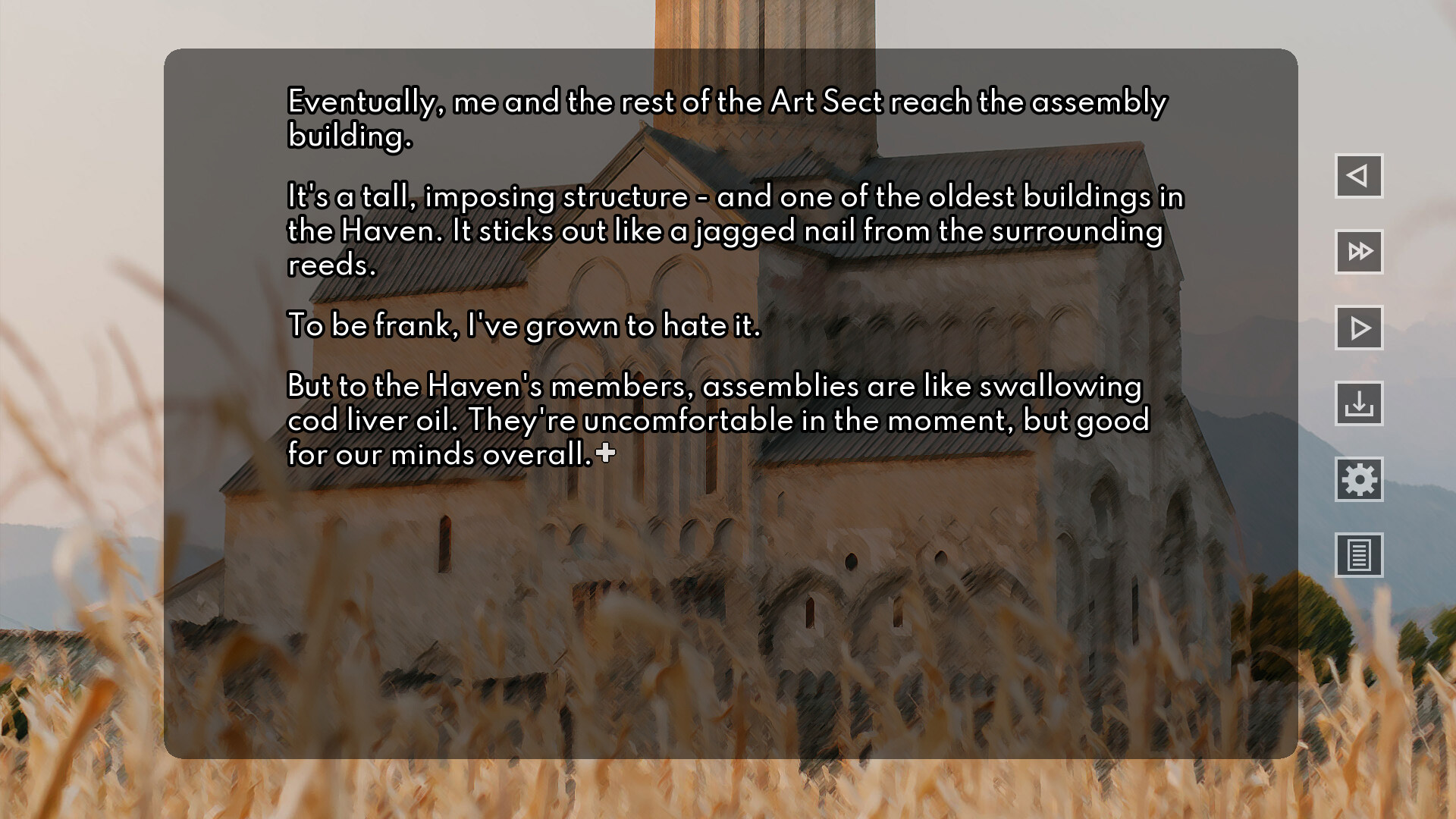In order to protect the Haven from the corruption outside of the island, the community hosts Apologia Assemblies: mandatory gatherings where misdeeds are discussed - and given appropriate punishments.