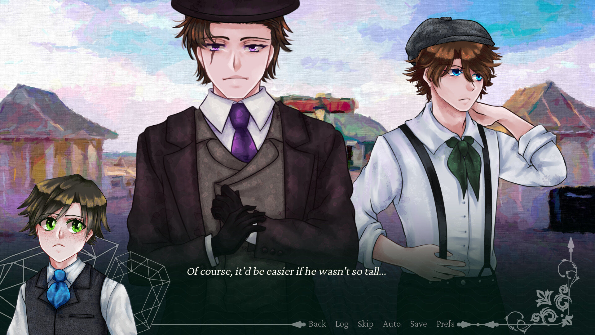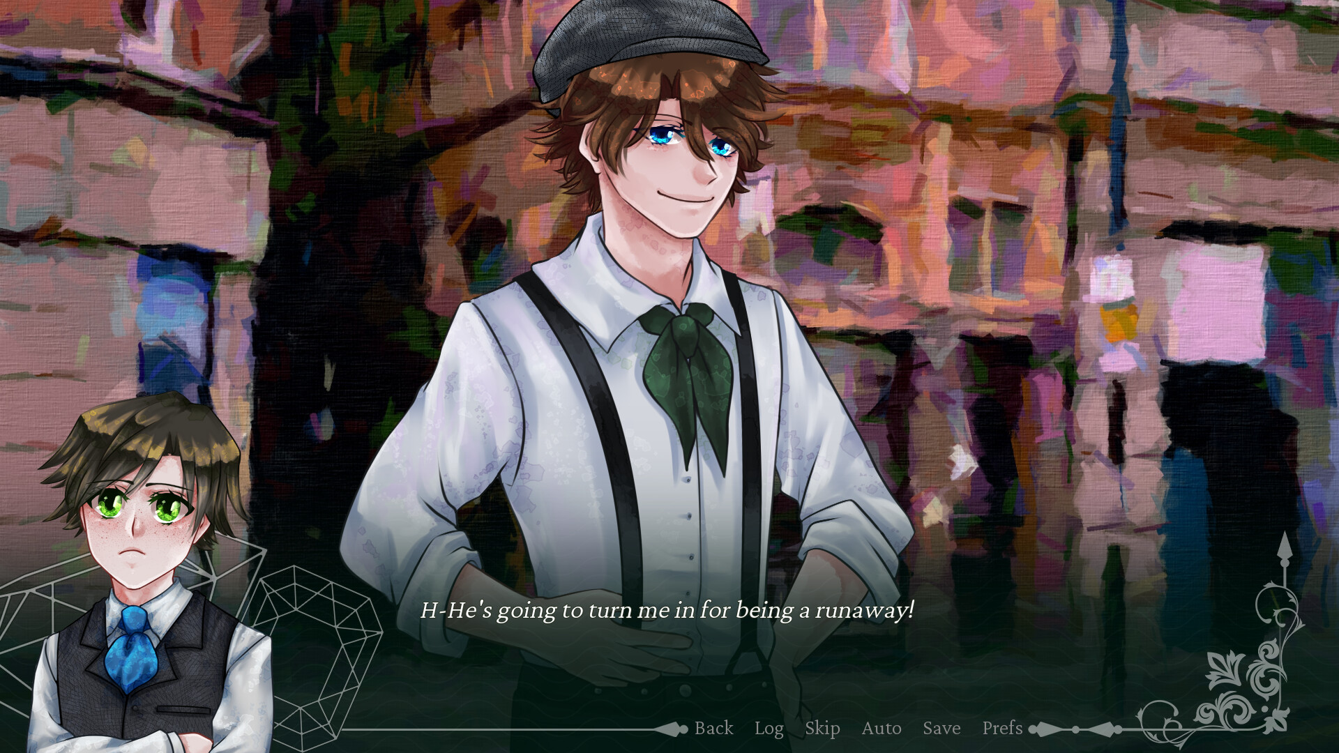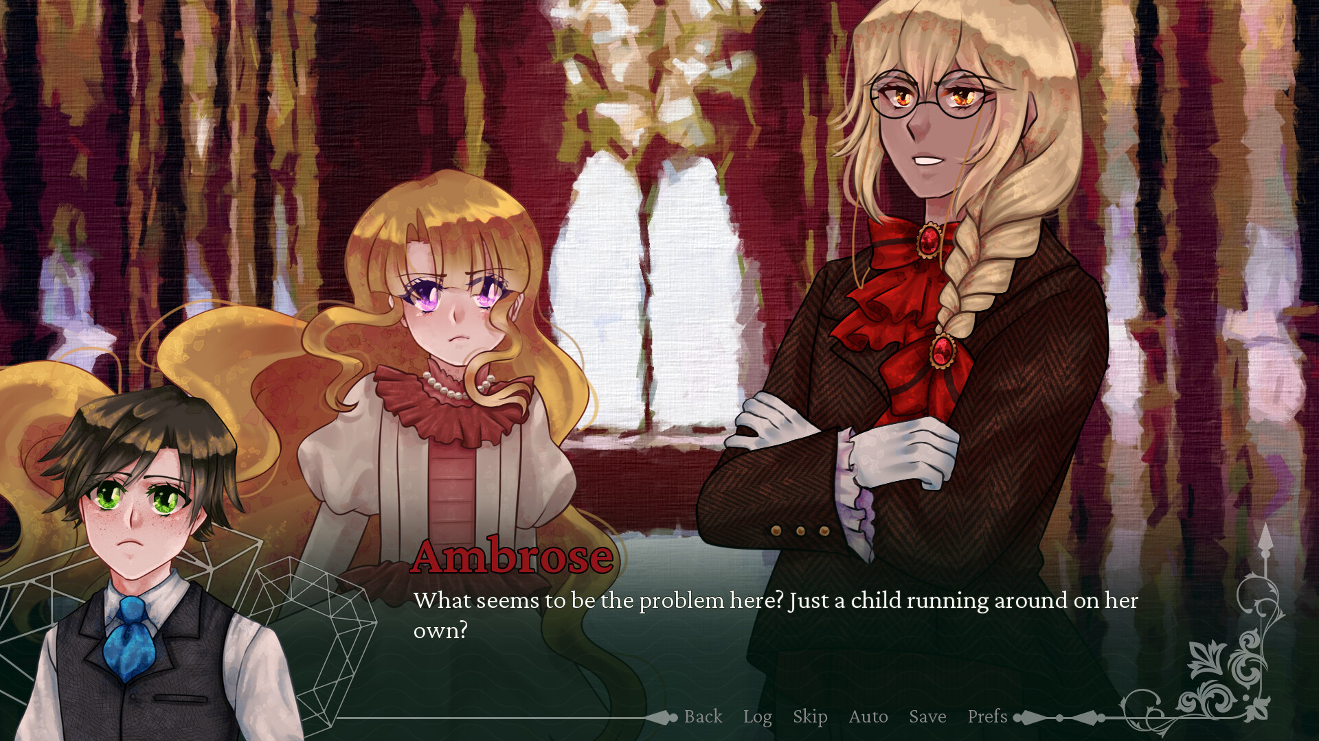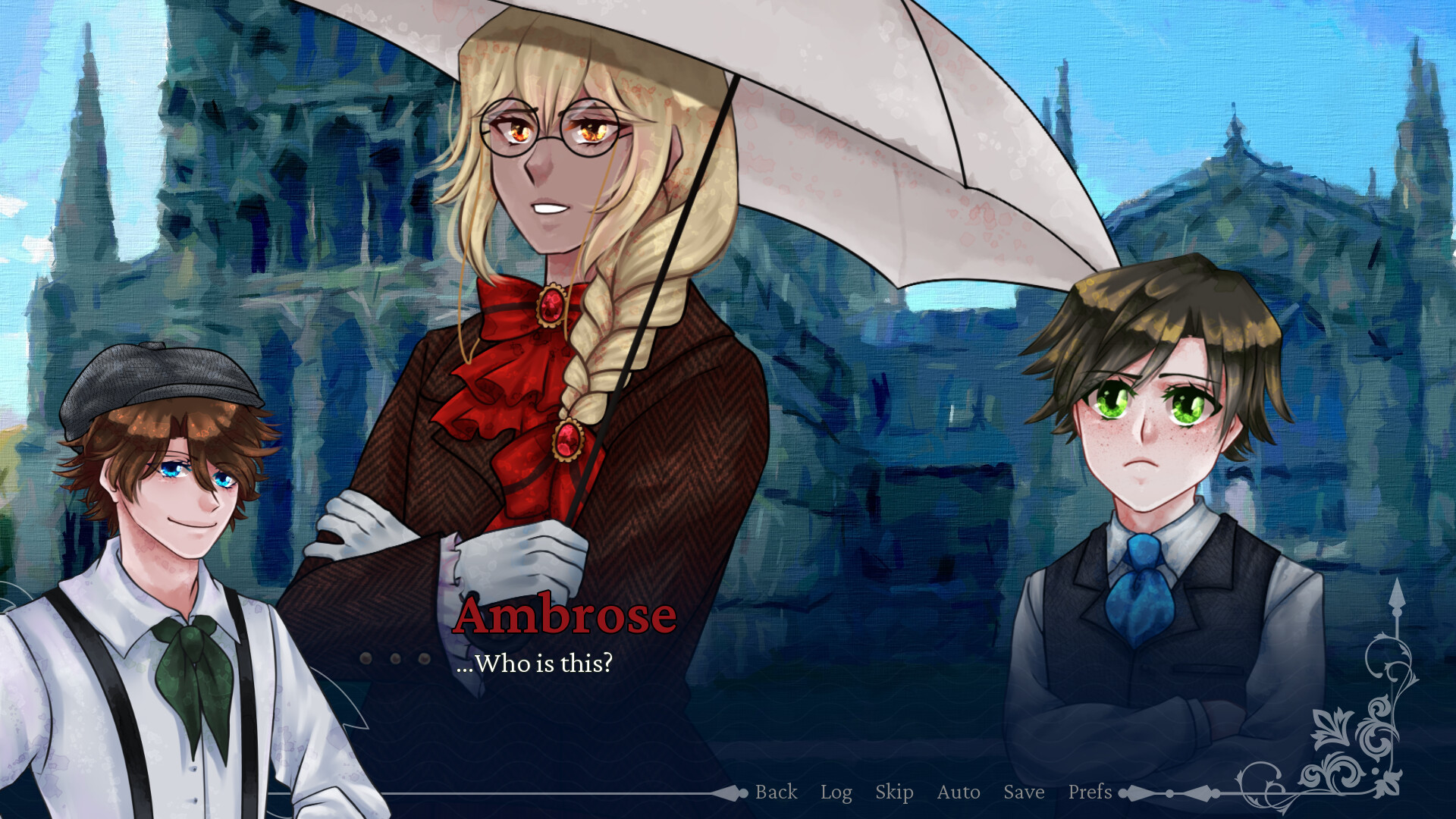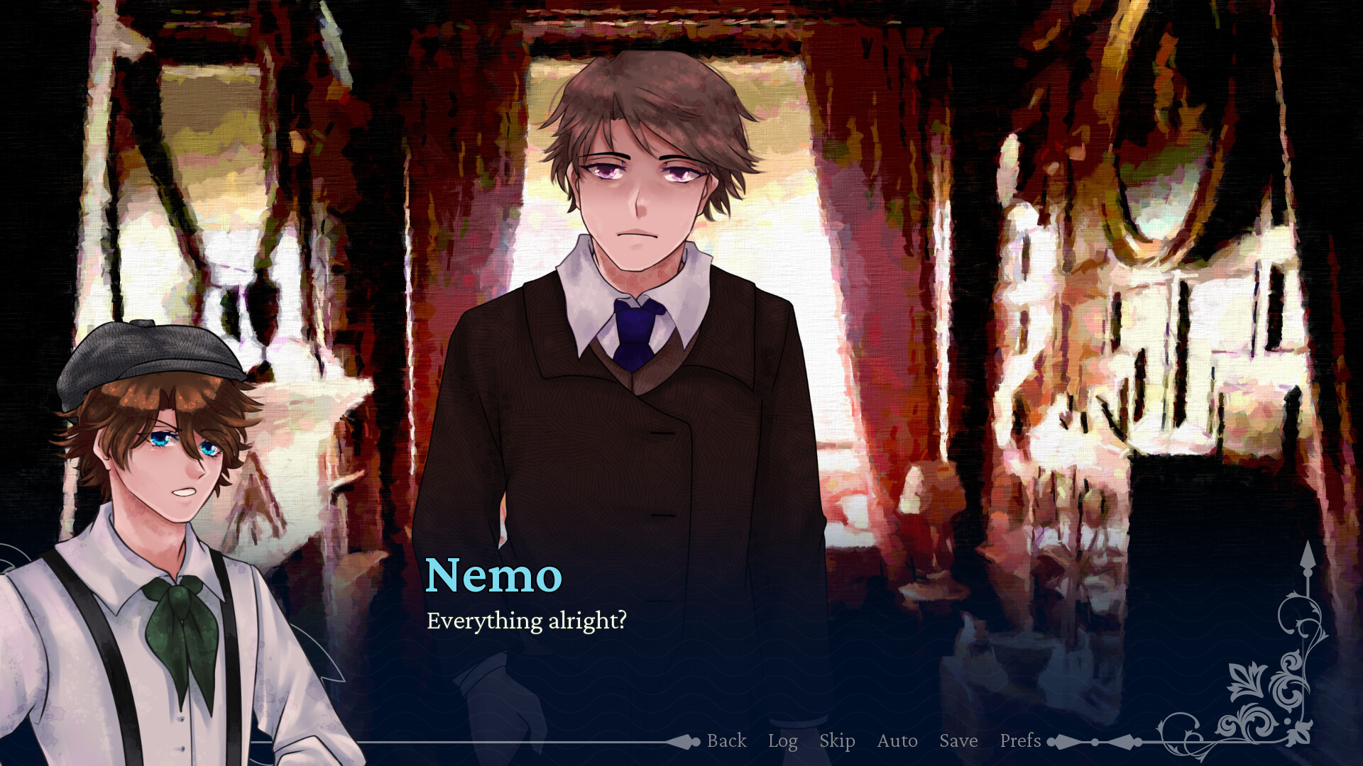 Crimson Waves on the Emerald Sea is a Victorian-esque character drama visual novel revolving around 4 characters who become entangled in solving an unsolved massacre by a vampire.