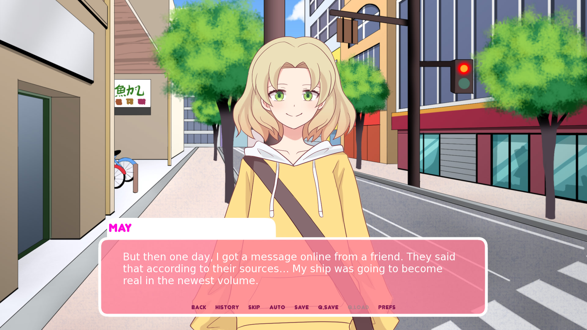 But May has a secret: one that sends her on a dangerous (not really) and difficult (if you have trouble talking to strangers) mission to the bookstore, where the latest volume of her favorite series has just come out. Within that book is the answer to whether her beloved yuri ship has finally been canonized!