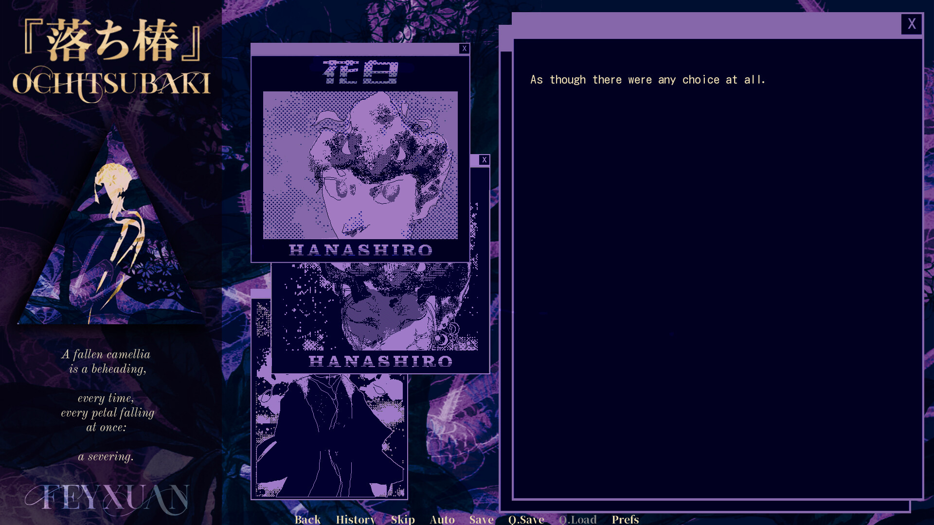 Hanashiro (he/she/they) and their few remaining kin all react differently to the trauma of being immortal and witnessing the apocalypse over and over again in different cycles of reincarnation. Shiragiku is unfazed and cheery and flippant and whimsical and capricious; Shirayuri is nowhere to be found; and Hanashiro? Hanashiro is planning on their death in 10 years, when the camellias fall, if they cannot find a reason to live by then.
