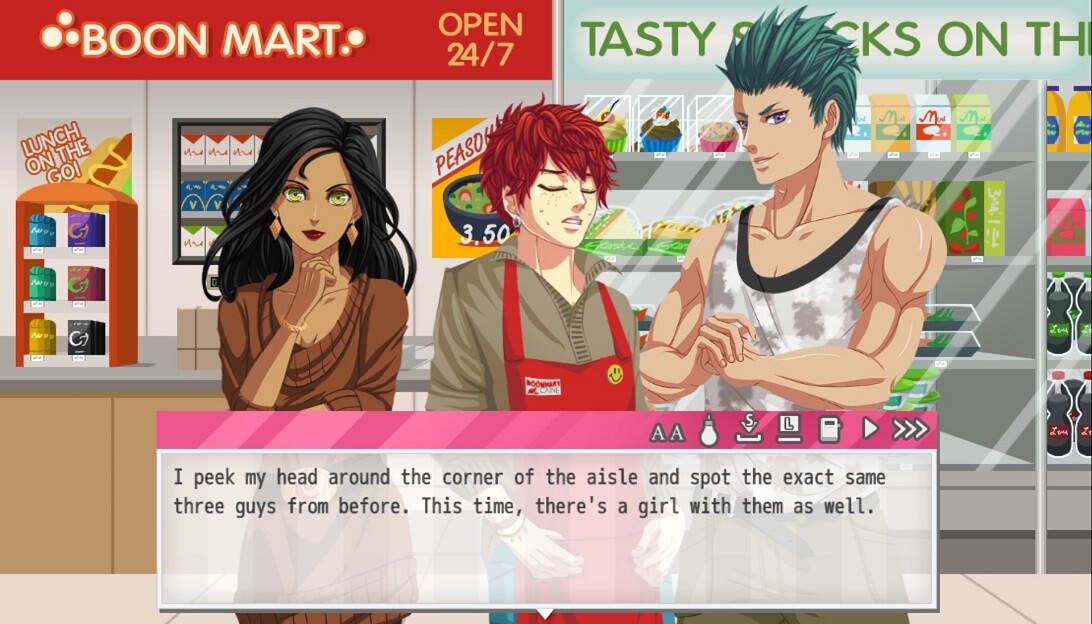 Customize your main character's looks and choose whether to be 'fierce' or 'kind' with your guy. Perhaps you'd like to kiss him first, or would rather he take the lead; it's all your choice and there are no bad endings! Each guy has his own unique route so you can jump right in and experience a completely different story.