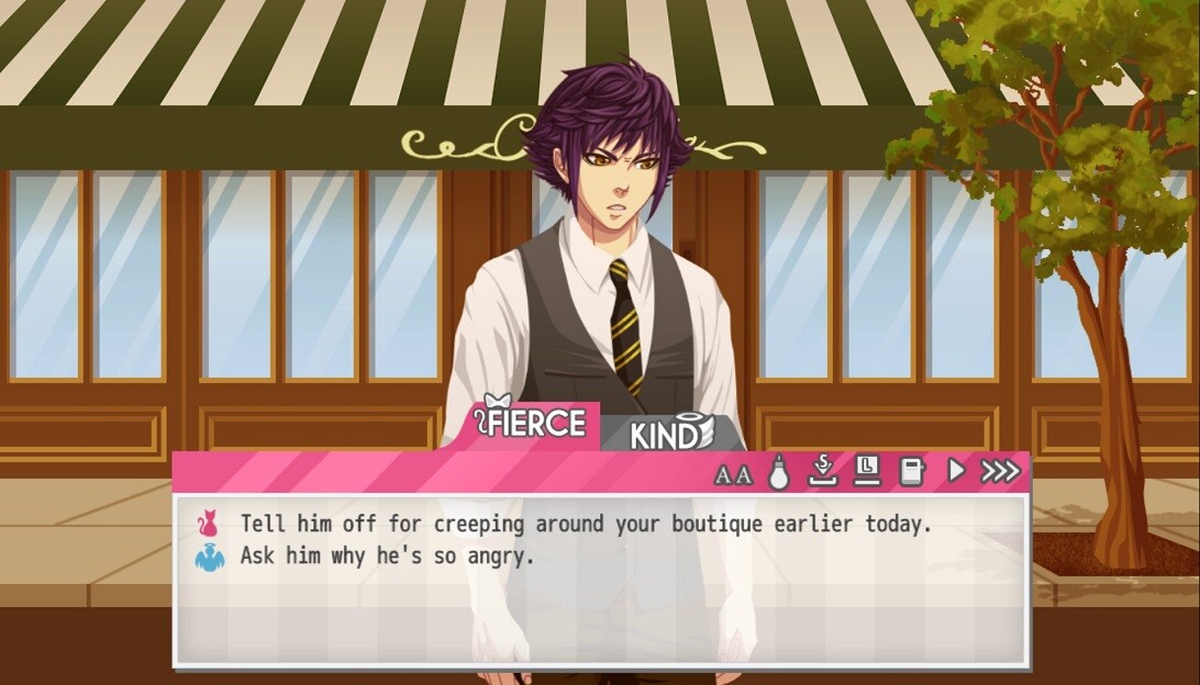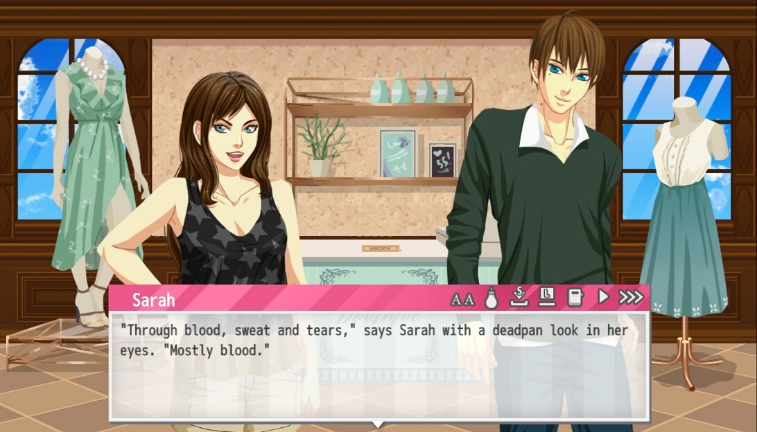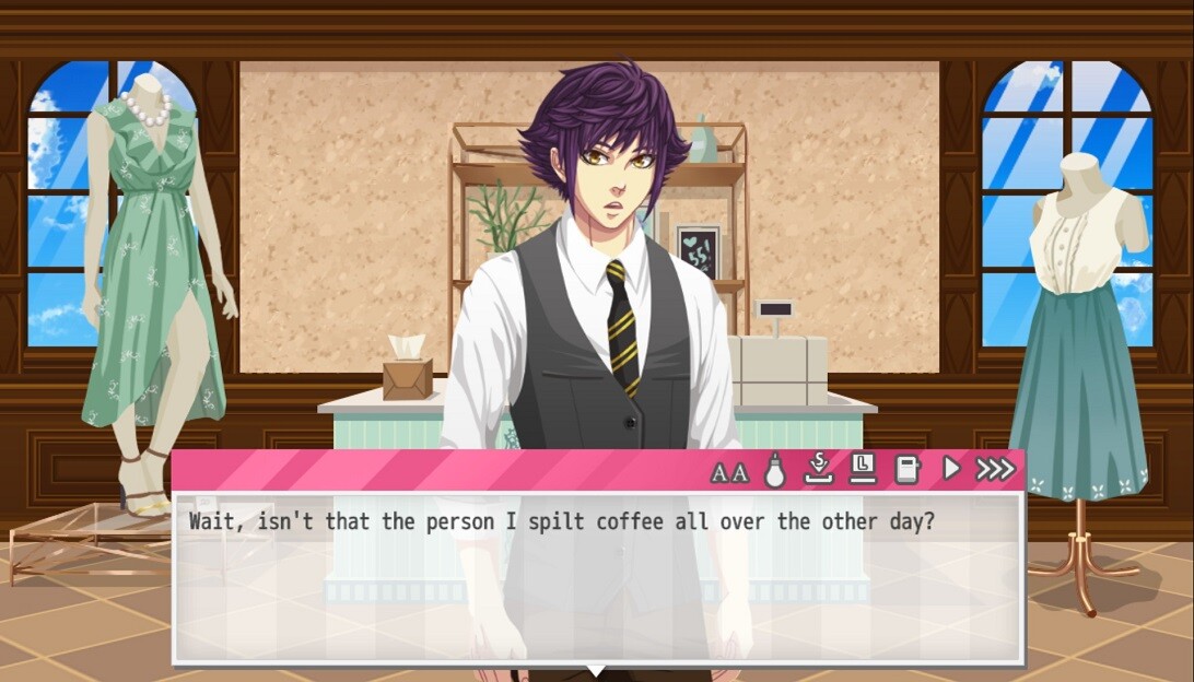 Design clothing and romance a guy of your choice. Tailor Tales is an otome that has you playing a female fashion designer who runs her own boutique. Set in a fictional European country, her life gets complicated when she meets a certain guy in a fateful encounter. Throughout the game she'll be required to design clothes for clients to earn enough gold to purchase the next chapter of the story.