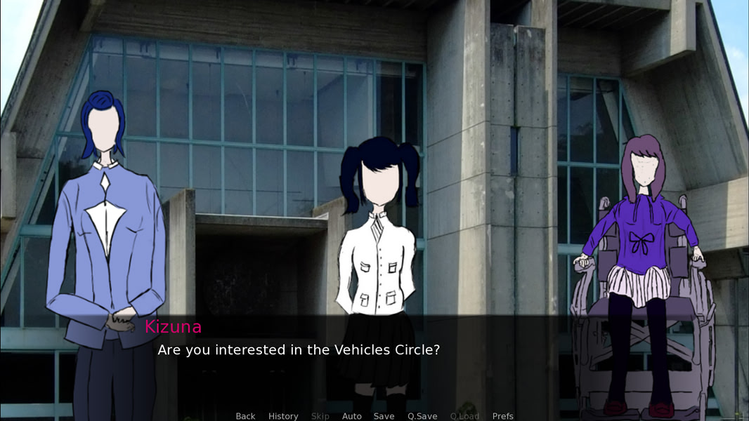 The Vehicles Circle is a college circle where a few girls bond together over their love for different vehicles. Asunder, a fresh high-school graduate, enters college, meeting as a quirk of fate the different girls that are Umi, Kizuna, Yozora and Hanabira. itch.io]