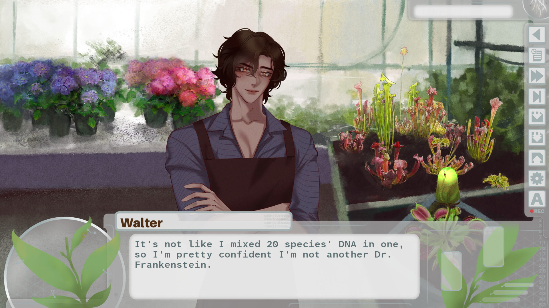 You're a botanist and a biotech engineer. As such, for the greatest exhibition of your life, you prepared for it your latest experiment: your own Dionaea species. Maybe it's the stress of your competitive workplace, or the complicated state of your relationship with your husband, that has driven you to this impossible situation.