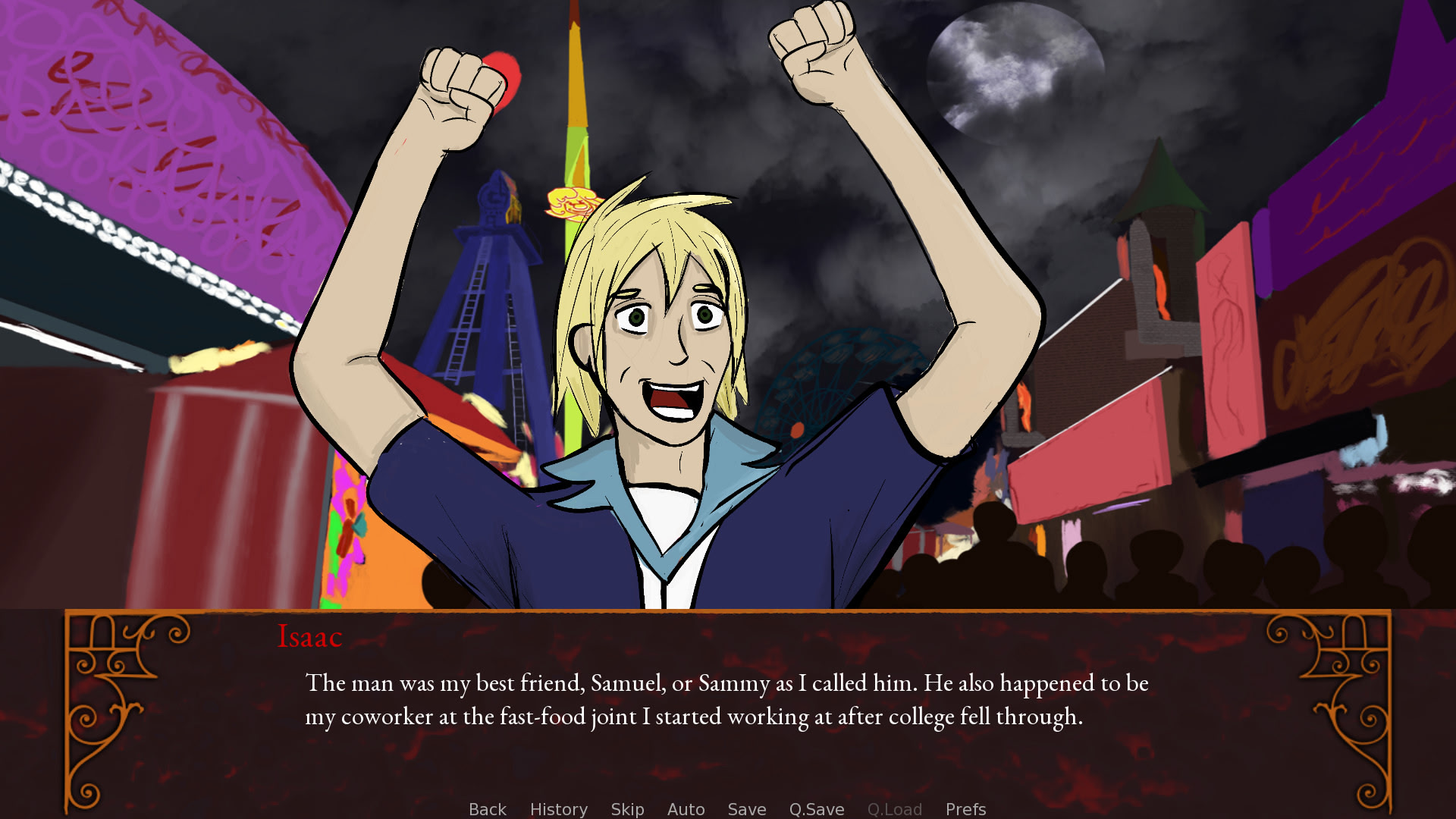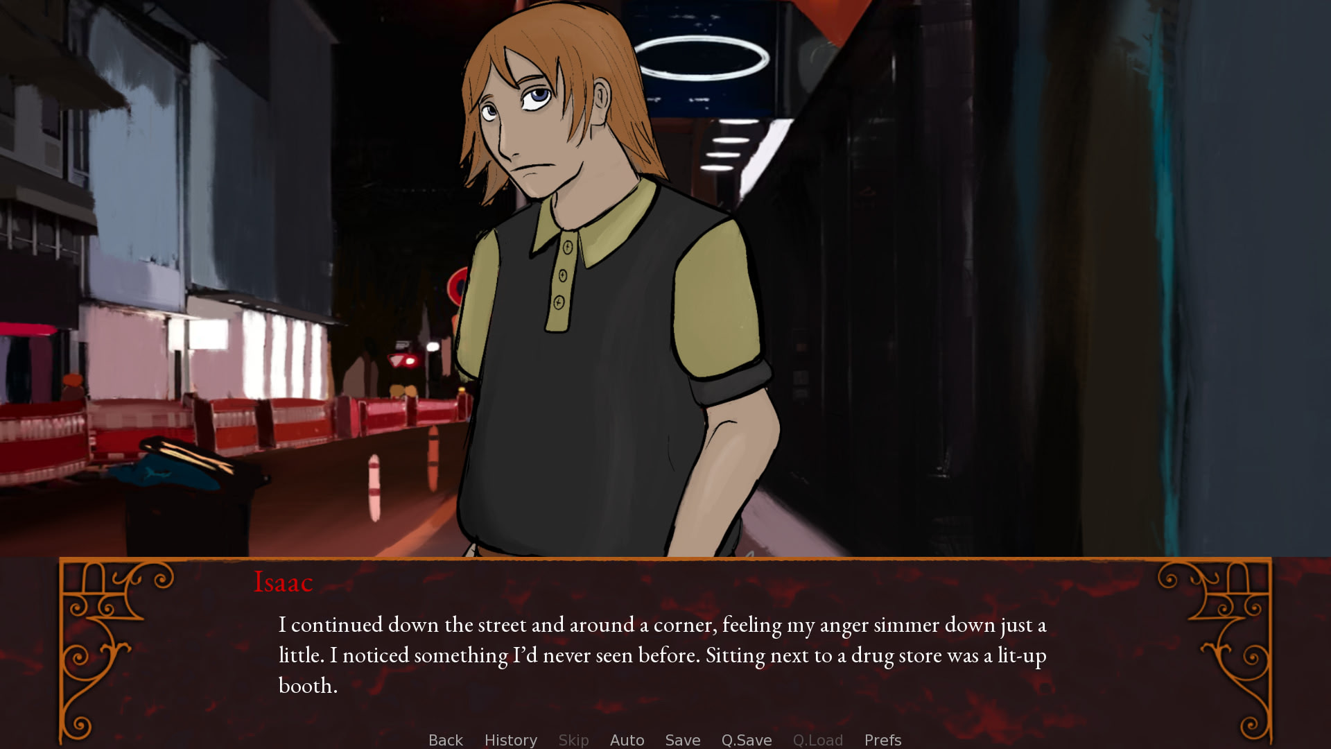 Isaac threw away his one shot at an Astronomy scholarship just for defending himself. Now, cynical and disillusioned, he strolls down the street of his apartment. But what Isacc doesn't know, is that this night may just change his entire life forever.. itch.io]