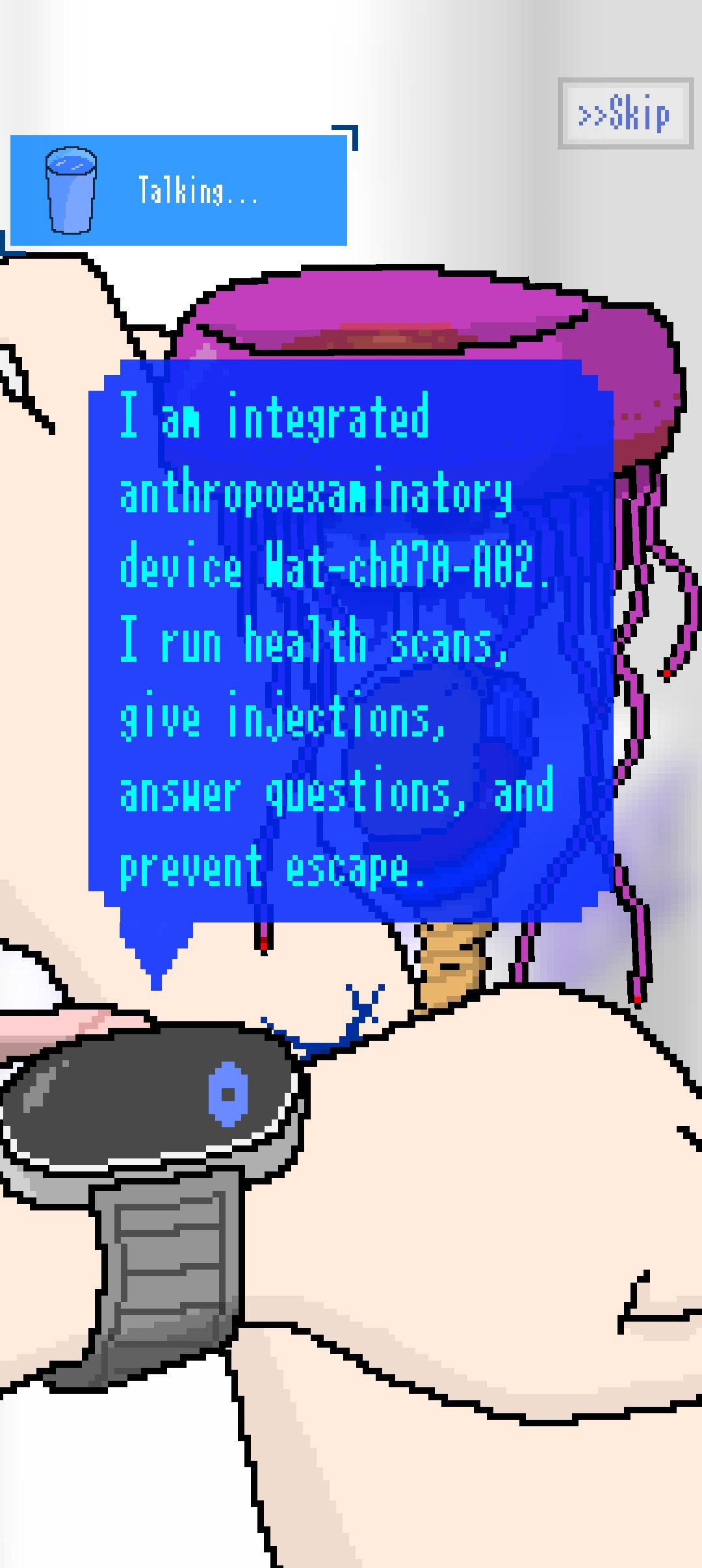 Good morning, Hostbody! You awaken to find a strange but cute creature growing from your arm. It turns out to be a terrible parasite that will drain all of its host's vitality. Do you kill it, or let it kill you?