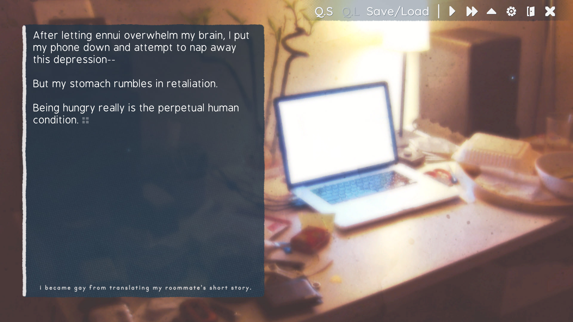 A mediocre translator burned out by capitalism. A writer who has only been published once in her entire life. They meet as roommates and develop a relationship that is perhaps much more than love. I Became Gay from Translating My New Roommate’s Short Story (or GFT) is a yuri visual novel about tw...