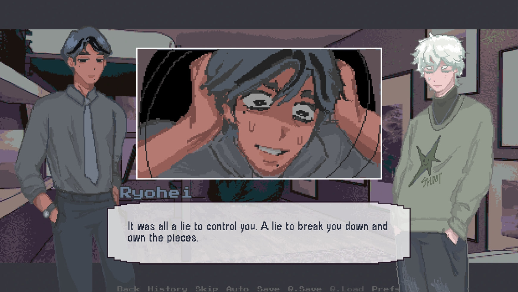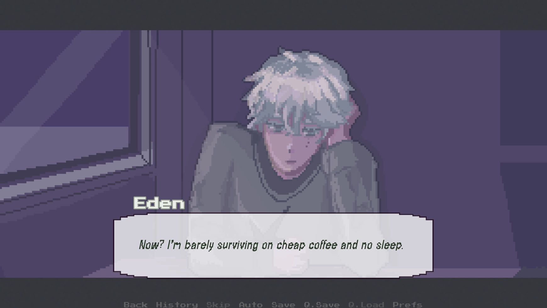 You play as Eden Cross, who suffers from chronic insomnia and feels disconnected from their life. One day, an old college acquaintance – Ryohei – shows up, pitching a miracle cure for your insomnia: 'an experimental therapy'.