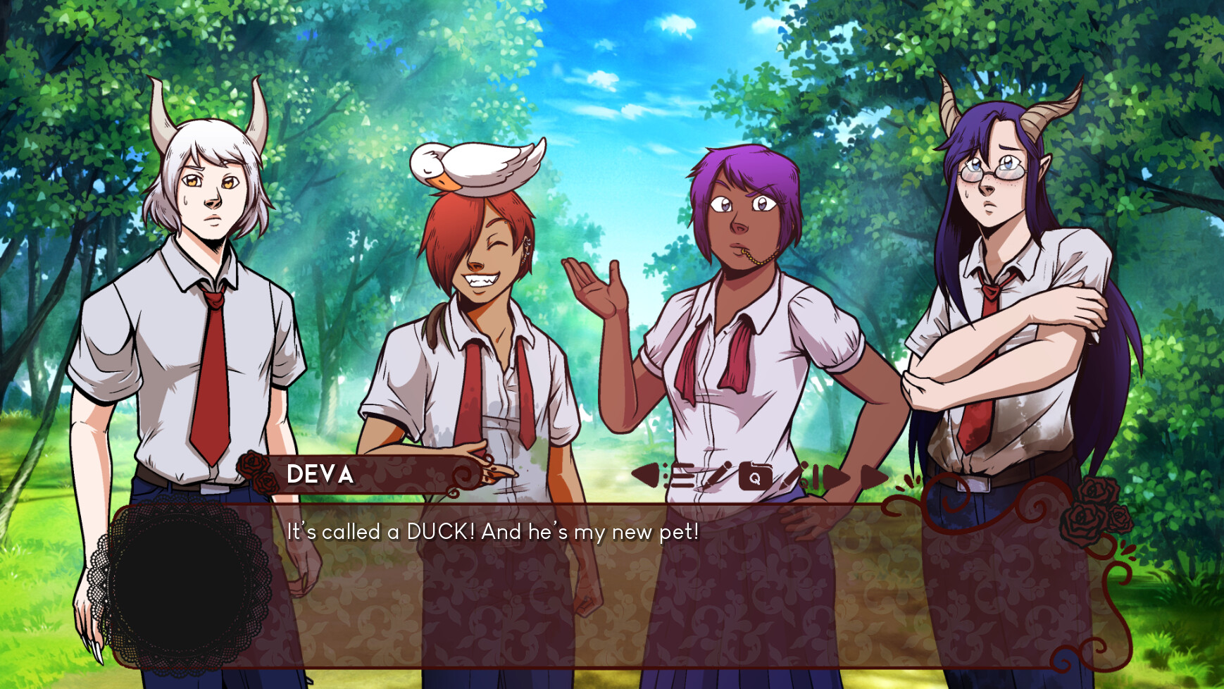 Ellie and Jaji are childhood friends with an affinity for the occult. However, their plan to gather enough members to start up an occult club at their high school goes a bit off course, and now the three of you have some demons to contend with...or befriend. Will you be able to convince them to stick around, or will things with your new infernal allies go south?
