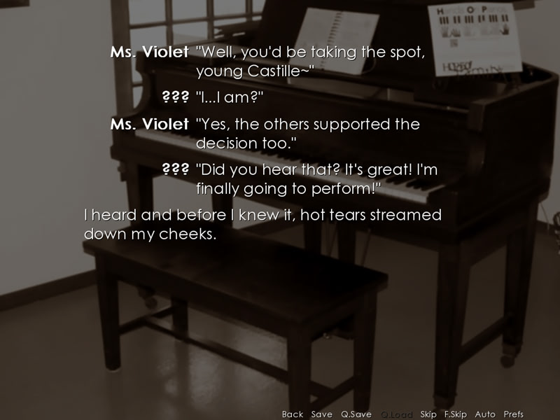 A young pianist dwelled over a past regret. This resulted to her just leaving practice and a scheduled recital all of a sudden. Without direction, she decided to hop on a train and just go somewhere where she met someone. She was offered accompaniment and she agreed for the heck of it. As the past still followed like a persistent itch.