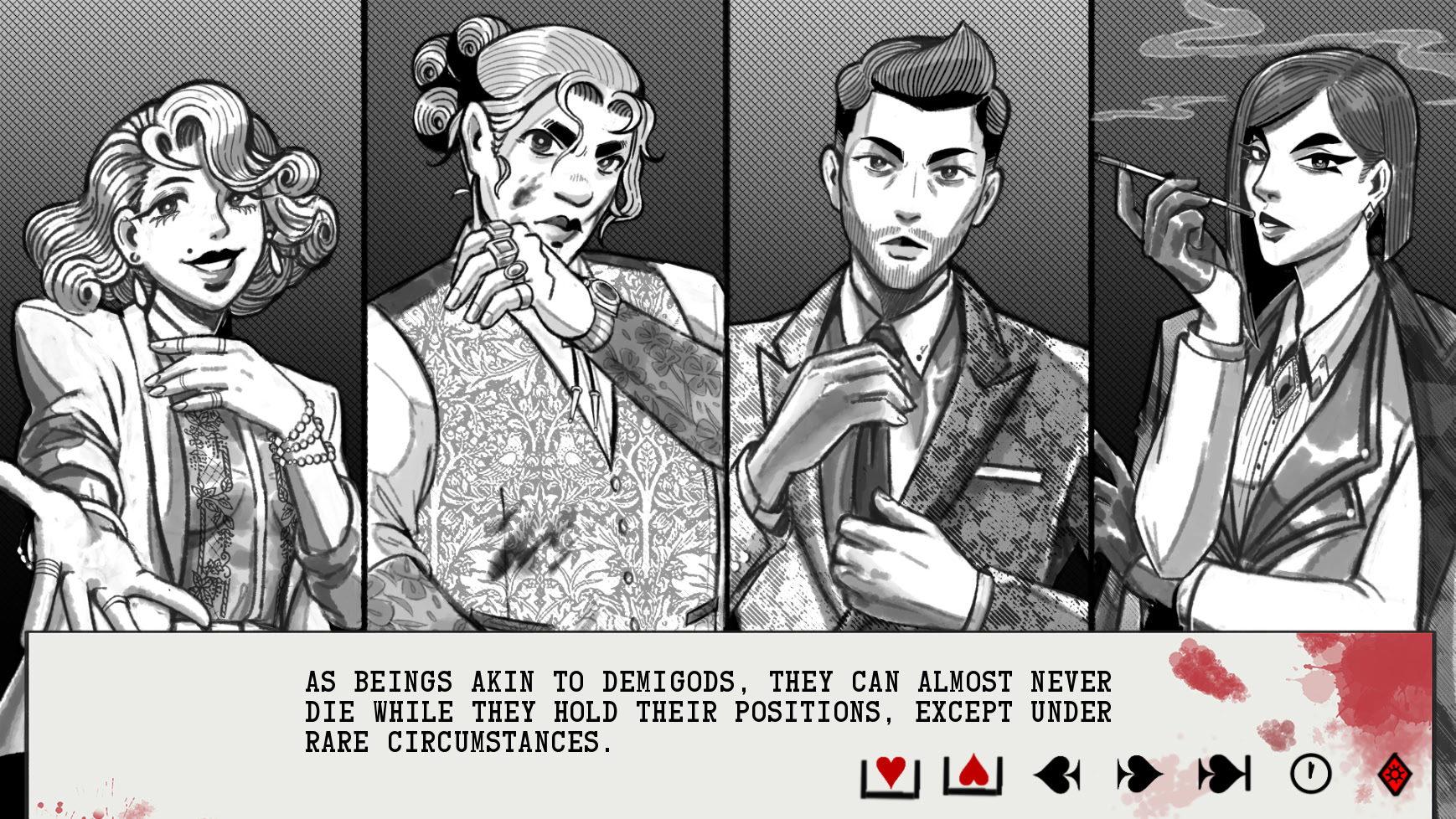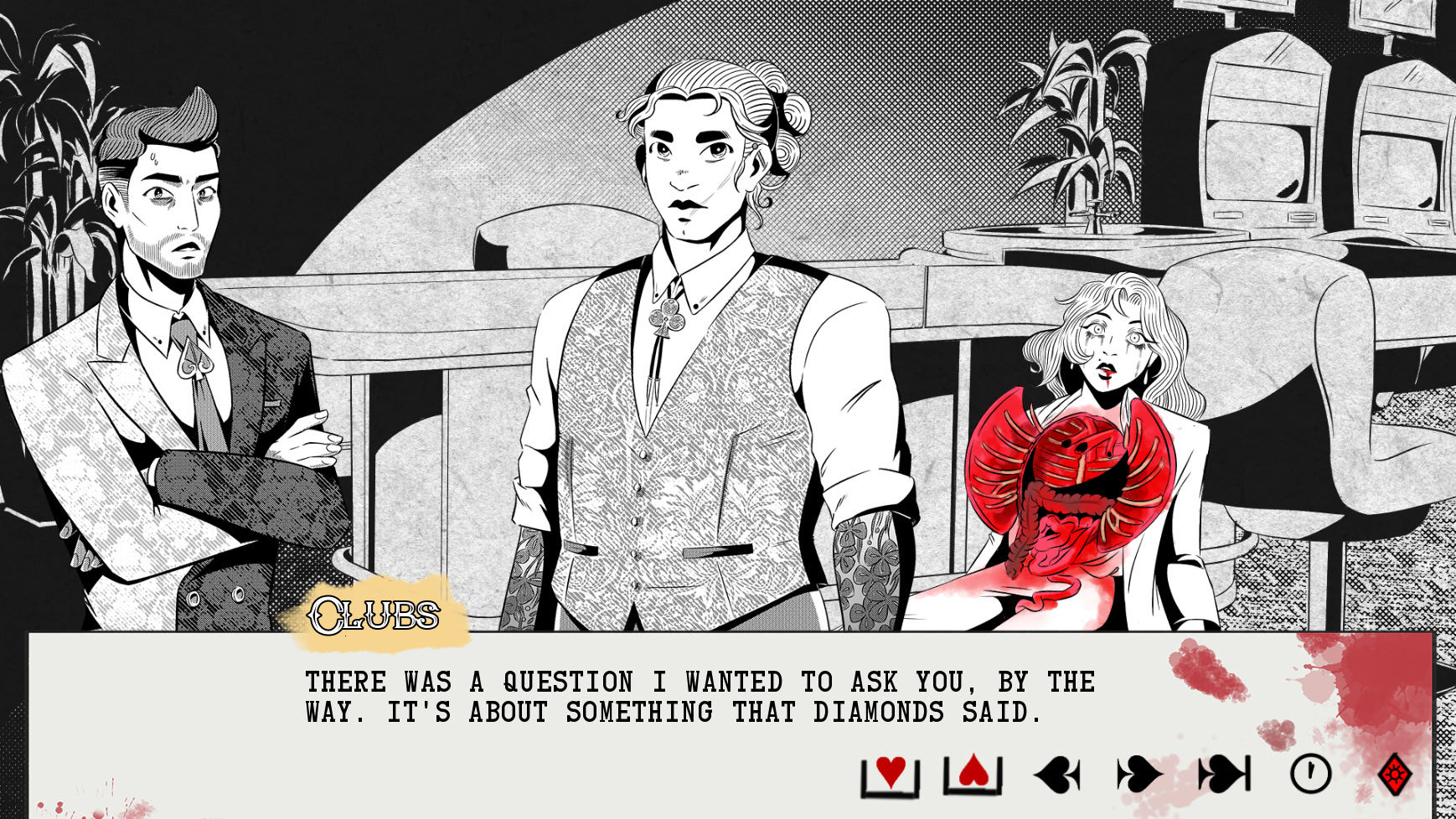 Hearts has been brutally butchered and killed. Diamonds, Clubs, and Spades are now investigating the crime scene.