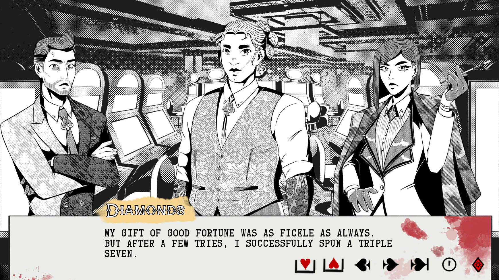 Each of the Playing Card Suits owns and operates one of the top casinos — Diyamantes, Bastons, Espadas, and Pusos — in a fictional Filipino city with a booming gambling industry. Hearts has been brutally butchered and killed. Diamonds, Clubs, and Spades are now investigating the crime scene. Itch...