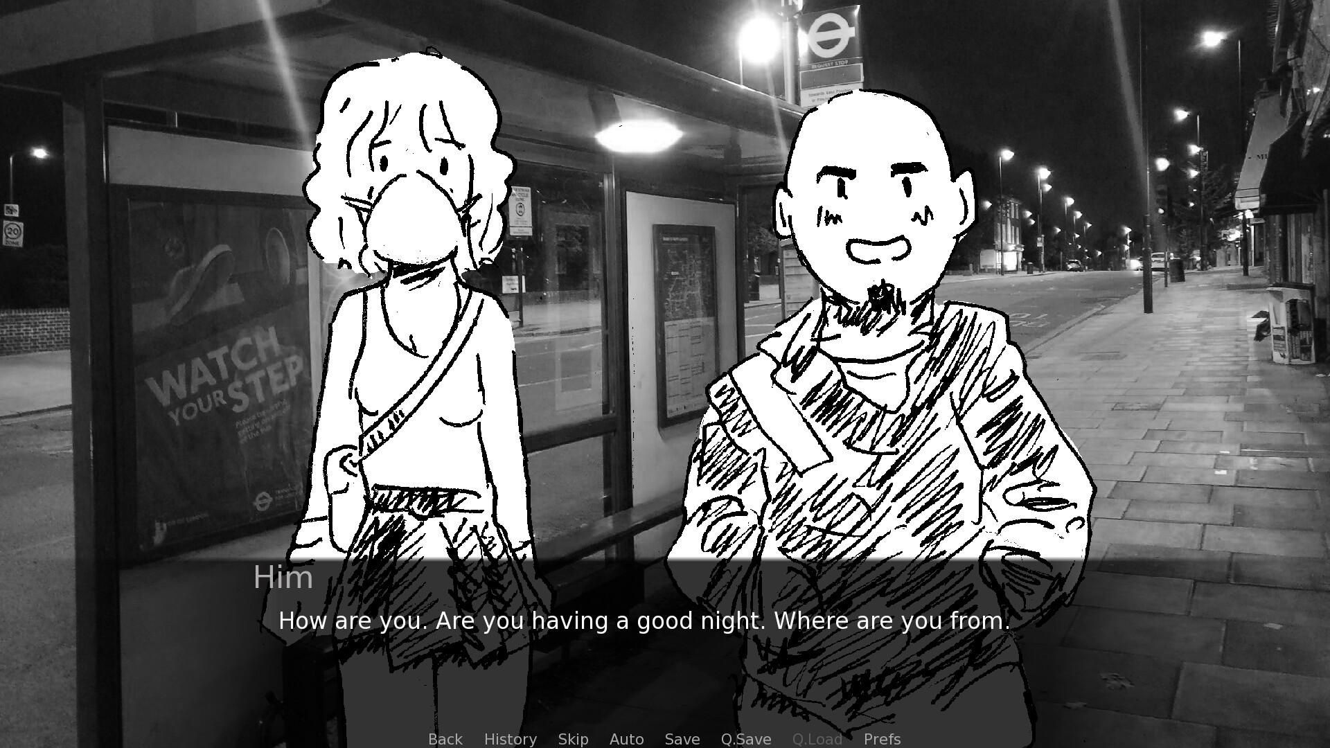 This is a very short (~5 mins) visual novel about a trans woman trying to get home from work at night. It's closely based on a true story.