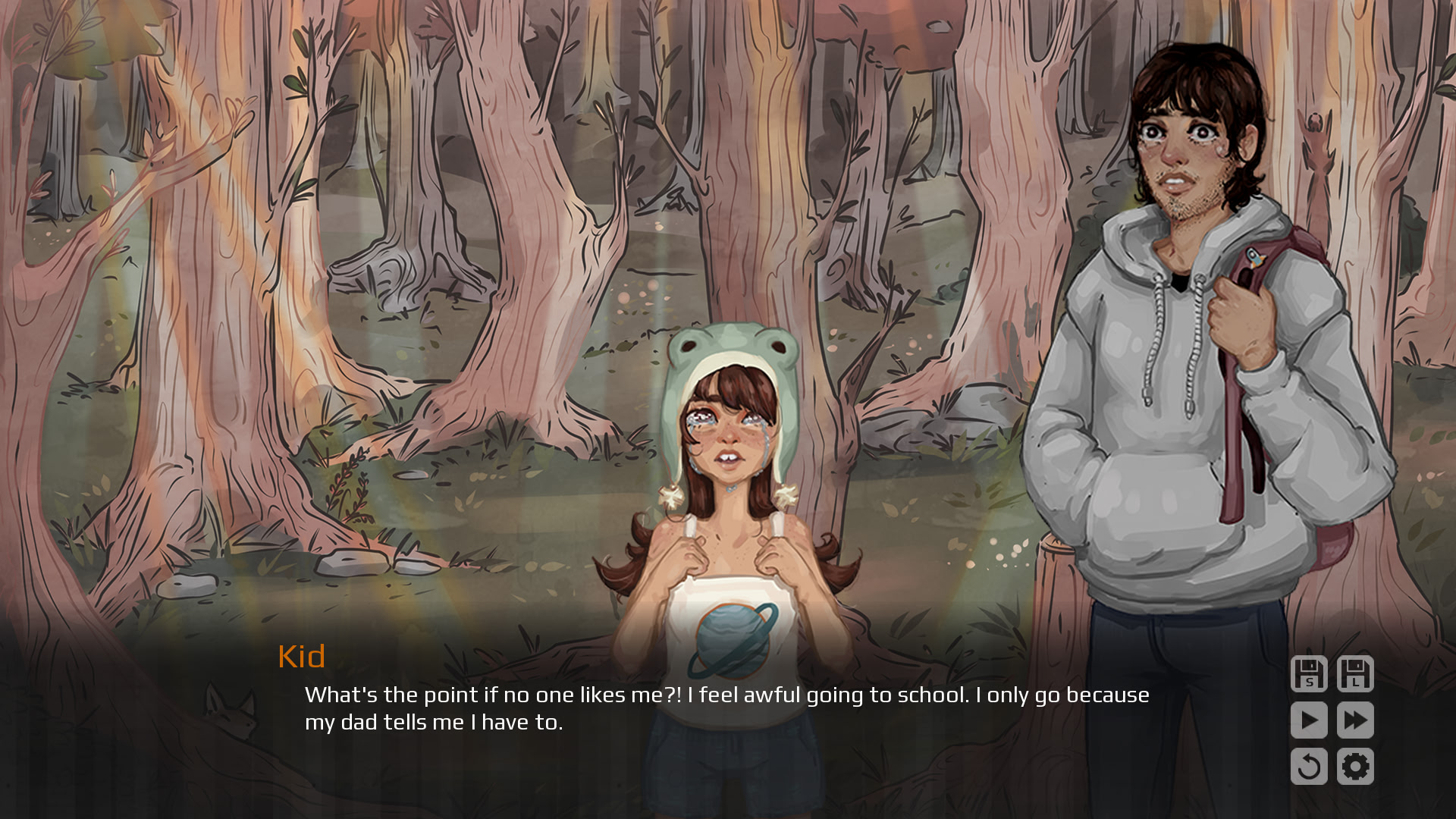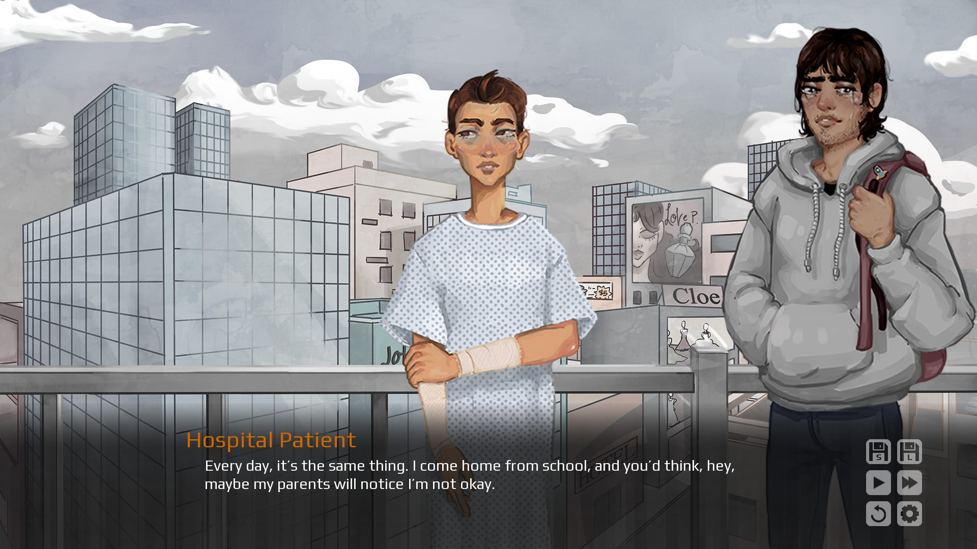 Sebastian is at the end of his rope. Tired of the pain, he goes to end his life but stumbles upon someone who is planning to do the same. Another Day is a game that focuses on mental health and talks about the experience of coming out and being transgender. Itch.io]