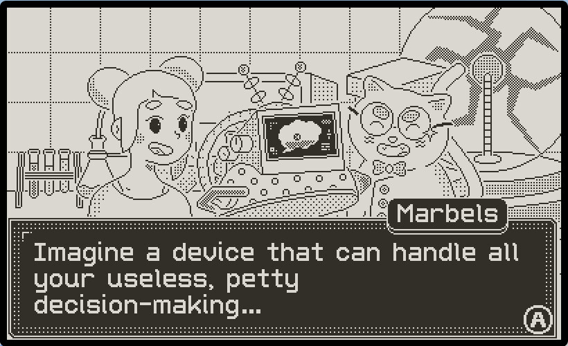 Lost Your Marbles is a charming visual novel where the roll of a marble makes all the difference. Join PROTA in this branching-narrative adventure as she makes her way through Pomegranate Village on a quest to find her lost dog MINTY and make it to the annual Festi-Ball before day's end.