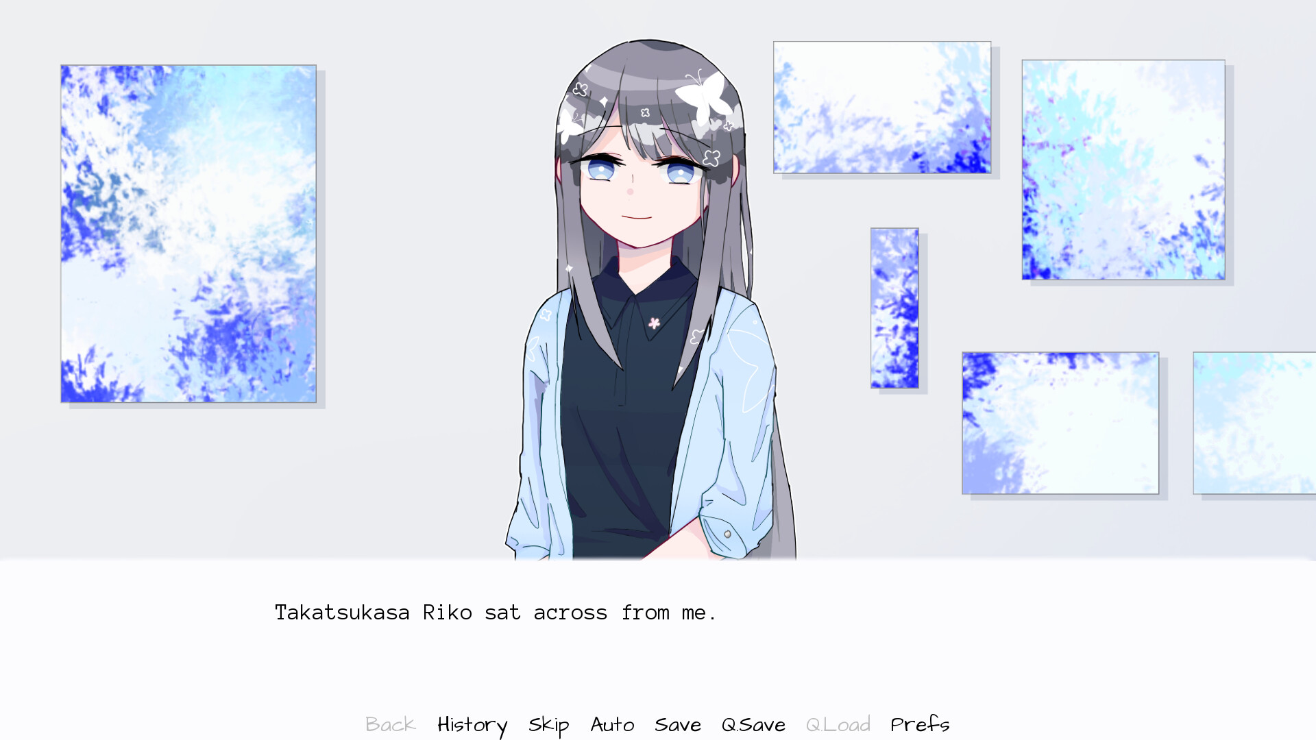 A girl in the seat, the artist behind the easel. They have a conversation. The girl's heart is shattered, and the artist's wrist moves no more. itch.io page]