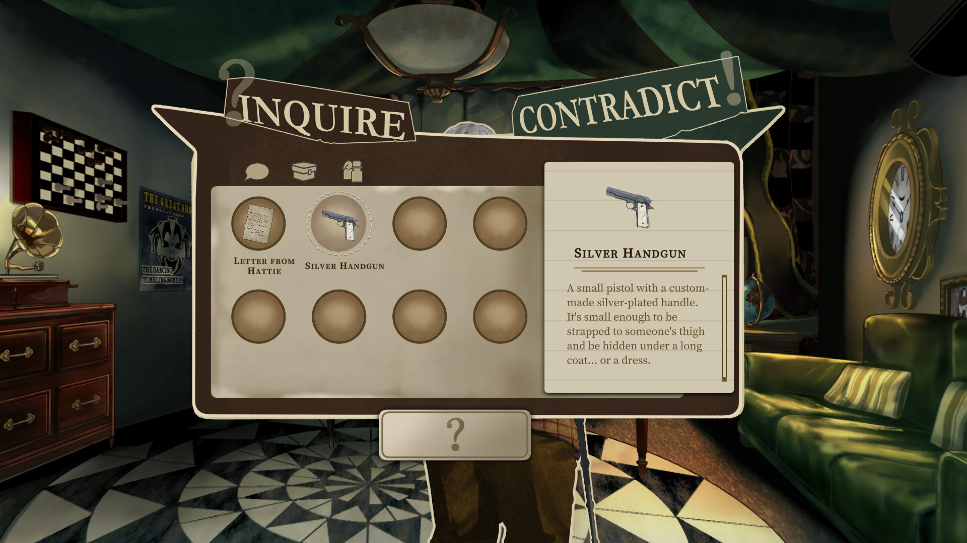 The star magician of the circus went missing: rumors are flying, trouble is brewing, but the show must go on. In this non-linear detective game, gather clues, question suspects and point out contradictions to unravel the mystery from two alternating perspectives.