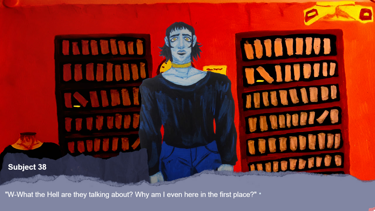 Room 400 is a short kinetic novel with point and click elements about the unfortunate subject 38 as he is forced to figure out how to escape room 400.