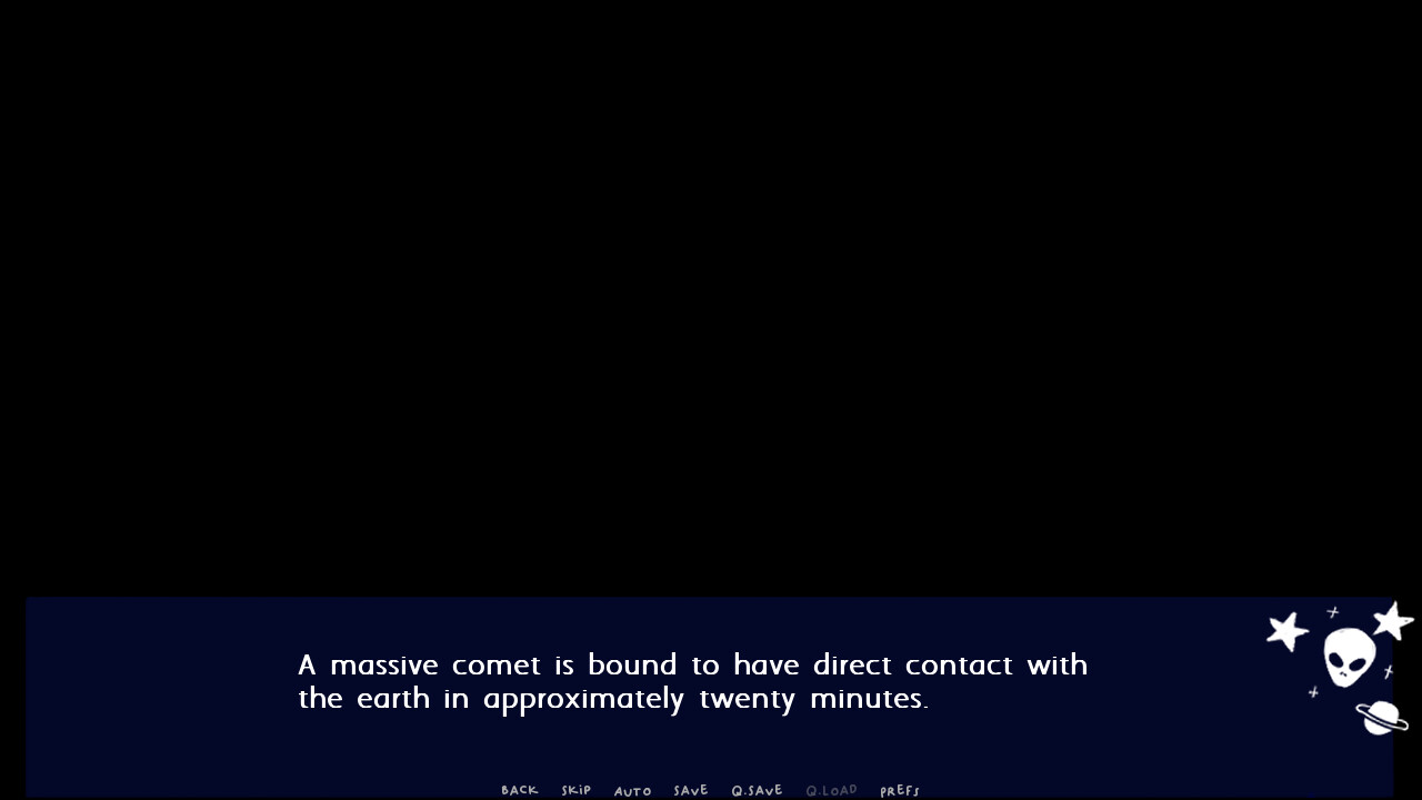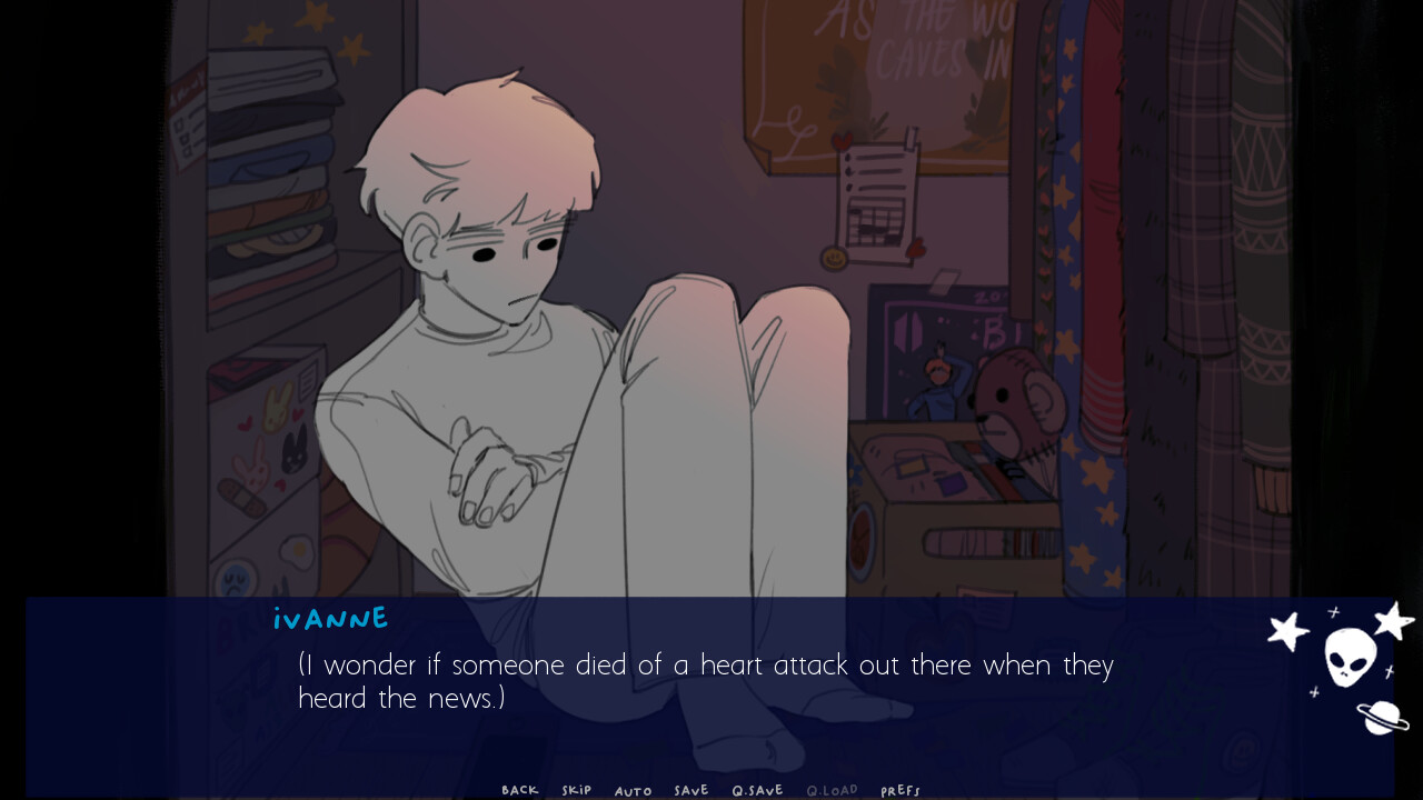 Ivanne speedruns his grieving process and complains about his life after hearing about the world ending in twenty minutes. Itch.io]